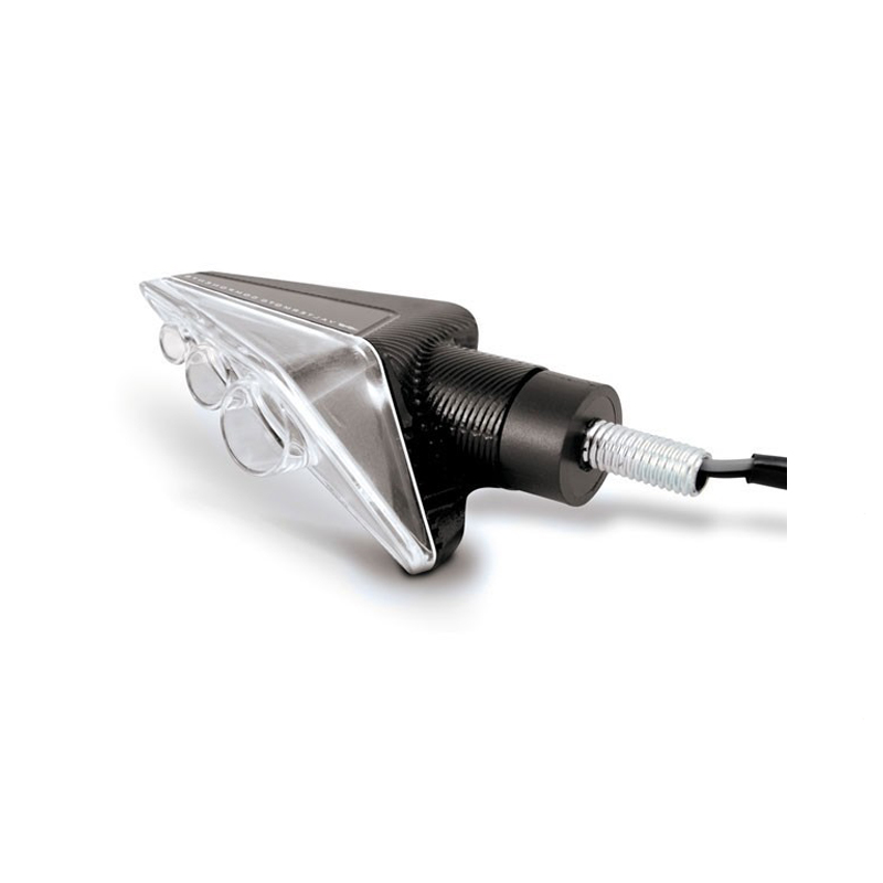 Crystal' universal 12V Led indicators arrow shaped short stem. VMC design aluminum alloy CNC machined body. Amber made in Italy hi-brightness Led, special shape clear lens. Resistors not needed because allocated into the indicators body. Available in different colors, 1 pcs in the package.