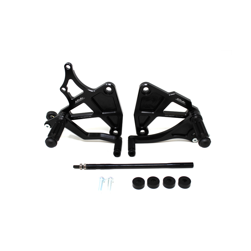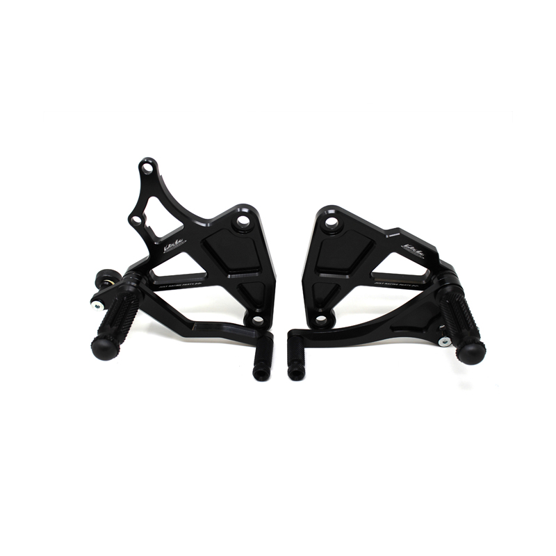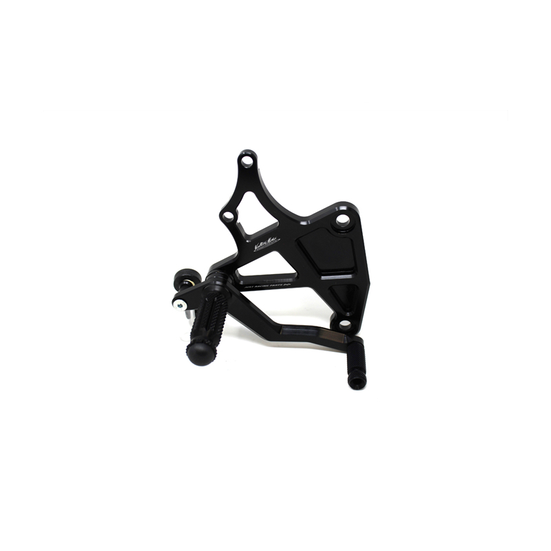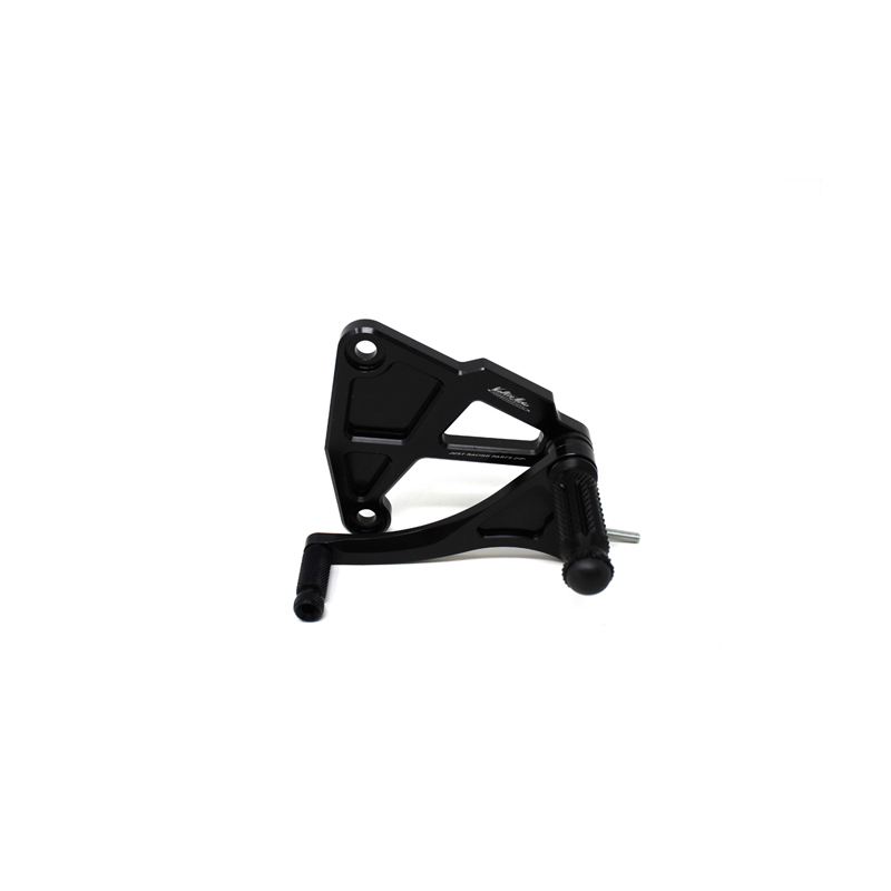 Entirely made with CNC machinery in Ergal 7075 T5 alloy, Type 1 rearsets are developed for street/racing use. Footpegs and frontpegs are made in aluminum alloy machined to obtain optimal grip. Shift lever is mounted on two ball bearings to avoid any friction. Rearsets are provided with the correct lenght shift rod, shift and brake ball joints. All spare parts are available. Possibility to fix the heel protectors.