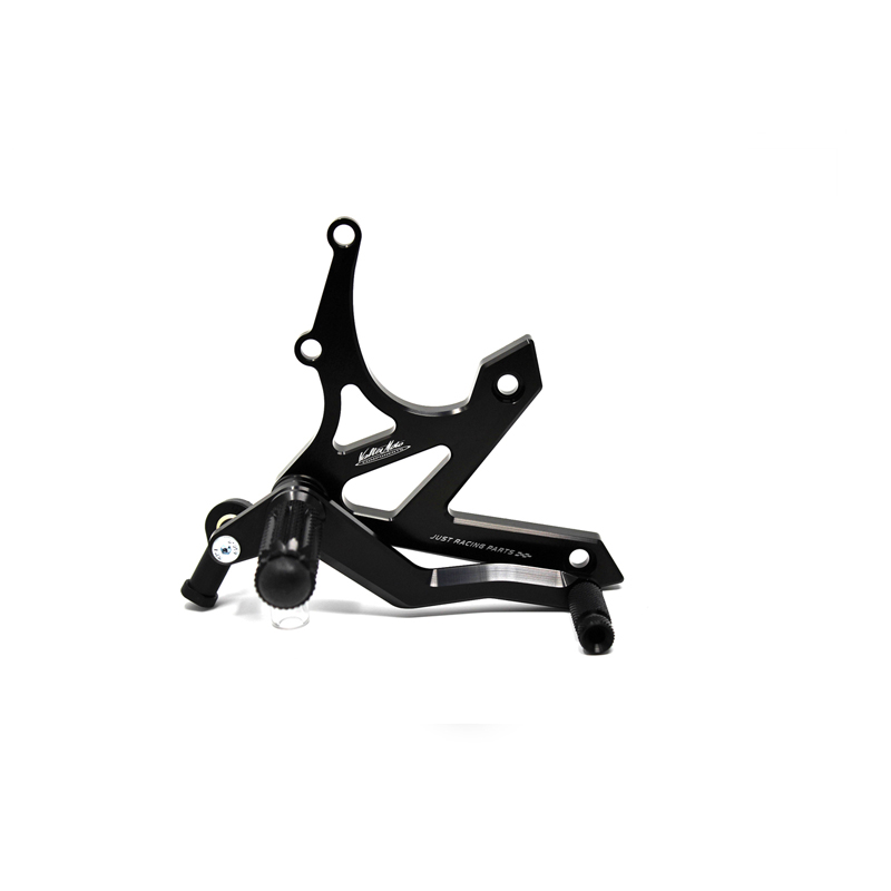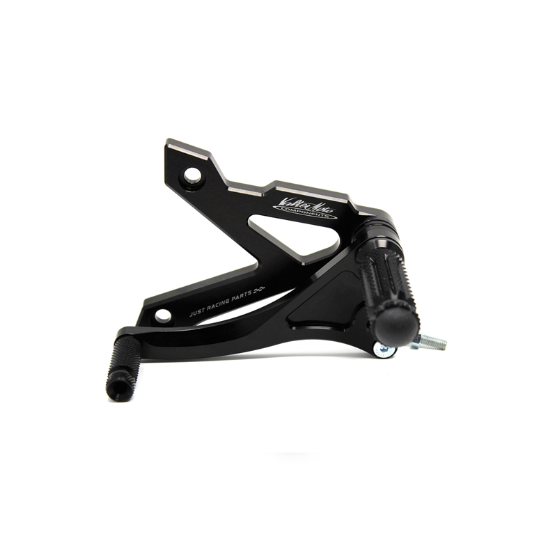Entirely made with CNC machinery in Ergal 7075 T5 alloy, Type 1 rearsets are developed for street/racing use. Footpegs and frontpegs are made in aluminum alloy machined to obtain optimal grip. Shift lever is mounted on two ball bearings to avoid any friction. Rearsets are provided with the correct lenght shift rod, shift and brake ball joints. All spare parts are available. Possibility to fix the heel protectors.