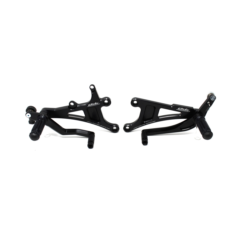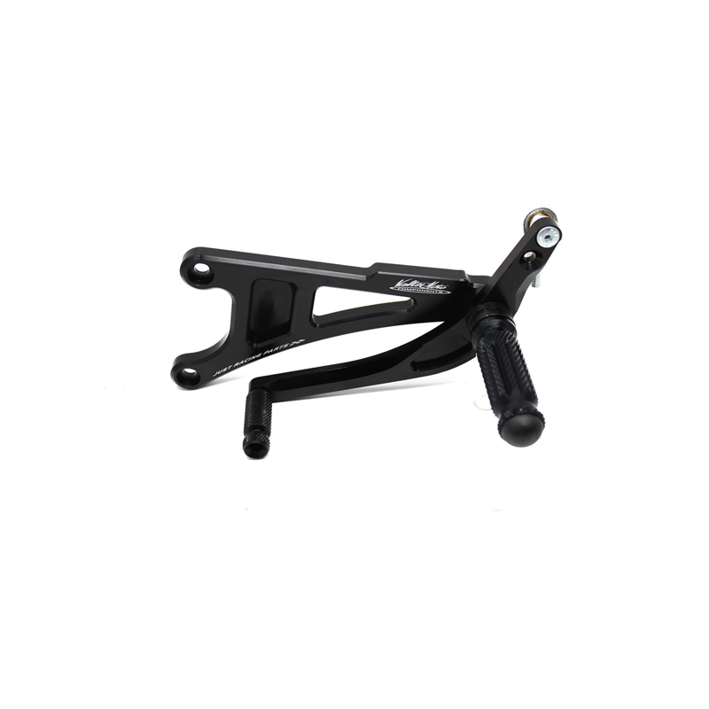 Entirely made with CNC machinery in Ergal 7075 T5 alloy, Type 1 rearsets are developed for street/racing use. Footpegs and frontpegs are made in aluminum alloy machined to obtain optimal grip. Shift lever is mounted on two ball bearings to avoid any friction. Rearsets are provided with the correct lenght shift rod, shift and brake ball joints. All spare parts are available. Possibility to fix the heel protectors.