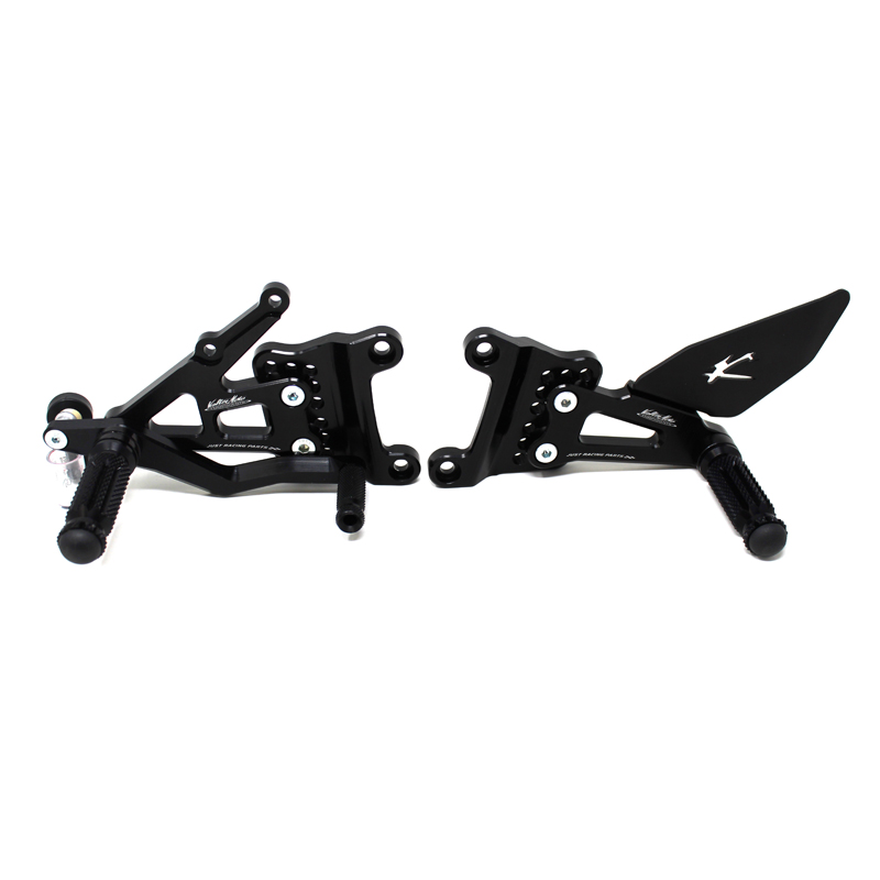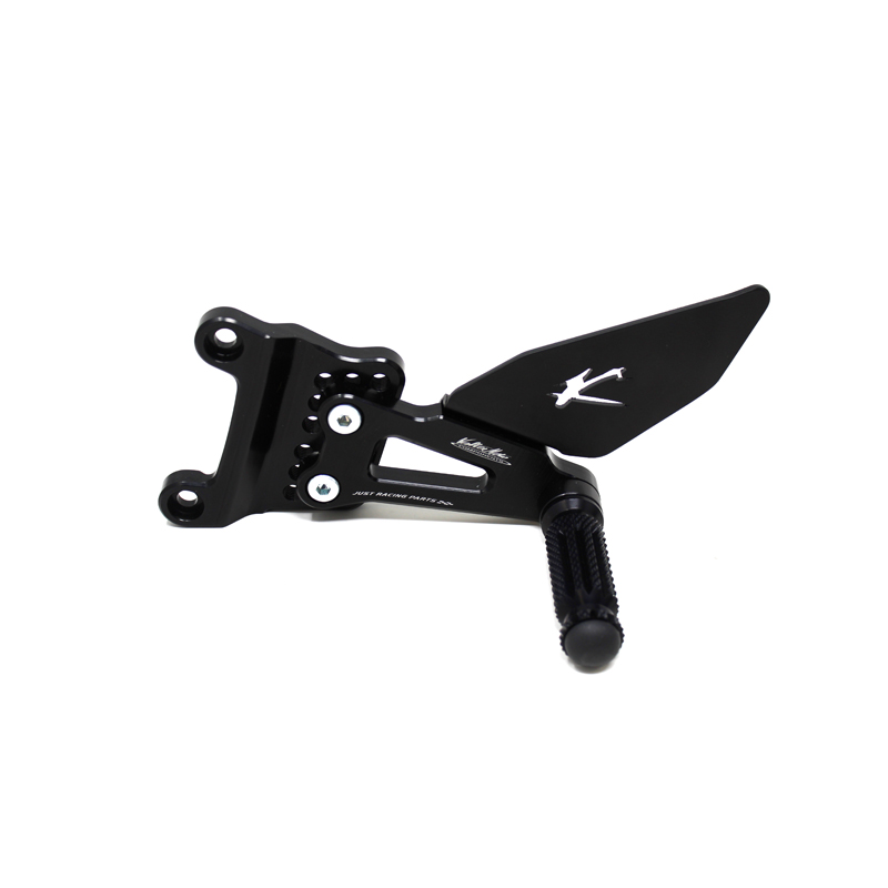 Adjustable Type 1.5 rearsets are developed for street/racing use, entirely made with CNC machinery in Ergal 7075 T5 alloy. Footpegs and frontpegs are made in aluminum alloy machined to obtain an optimal grip. Shift and brake levers are mounted on two ball bearings to avoid any friction. Adjustable plates allows from 6 to 9 different positions to find the best feeling on the bike. Rearsets are provided with black aluminum heel protections, the correct lenght shift rod, shift and brake ball joints, brake light pressure switch. All spare parts are available.