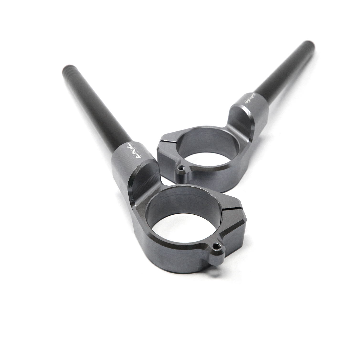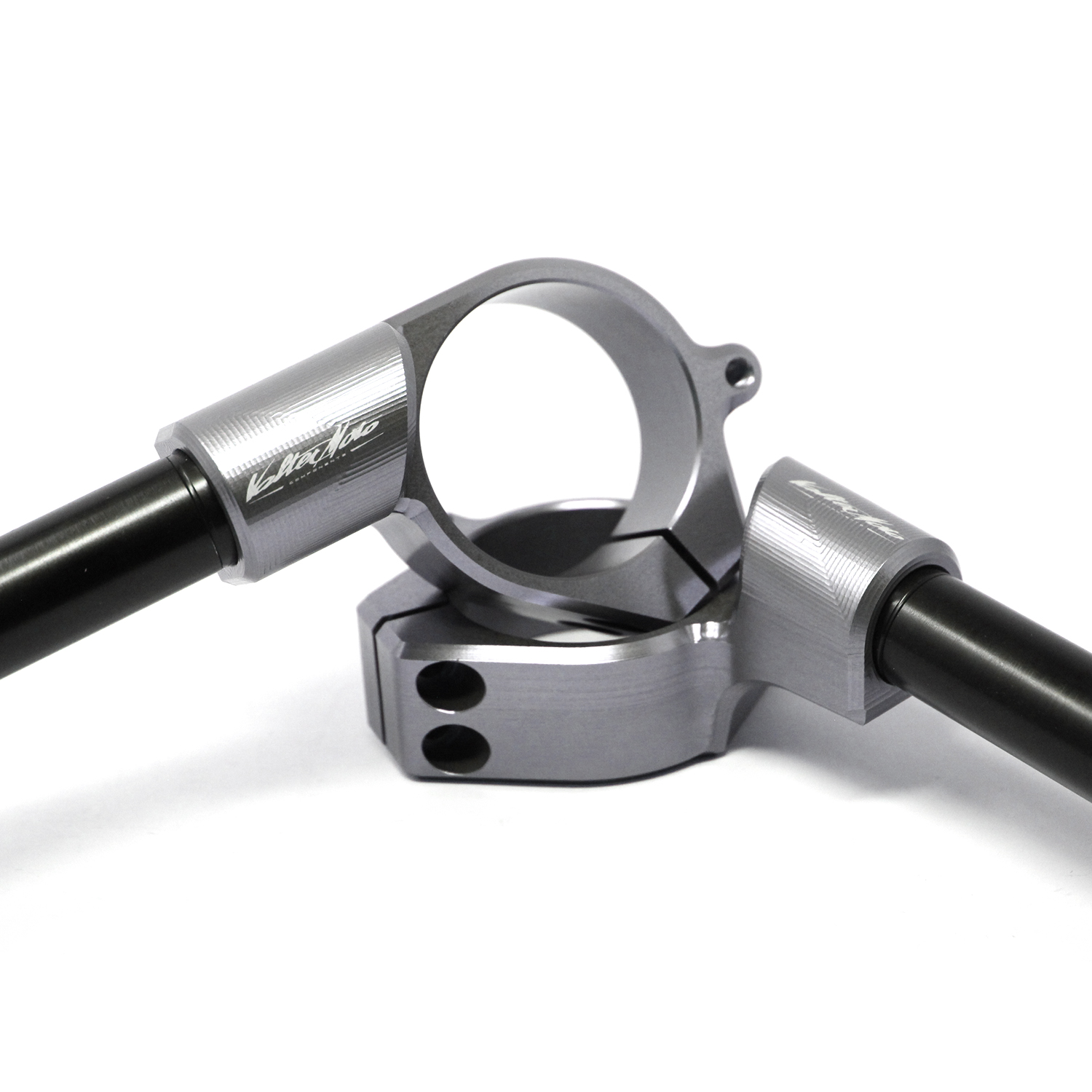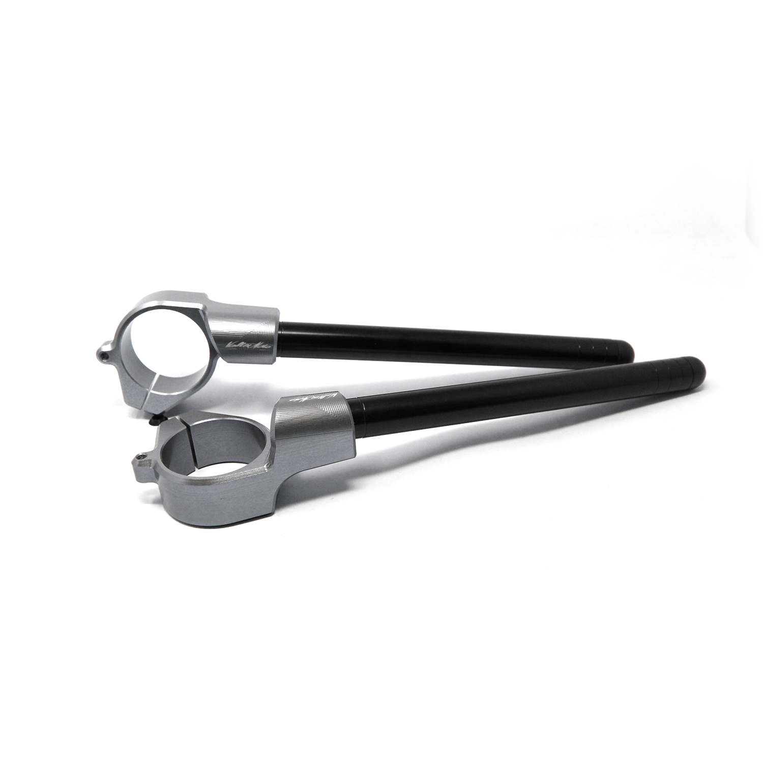 VMC Clip-on handleBars are widely used in the most of sports motorbikes championships in the world. Are entirely made with aluminum Ergal 7075 CNC machined to obtain the best streght and lightness. Two bolts to fix collar and 1 bolt to fix the bar directly into the collar. Bars External Ø22 - Internal Ø16 - length 225 mm. Inclination 7°. Only for collar type 2, we added loop to add a fixing point to the steering plate, this reducing the effort that the cuff screws apply on the fork sheath. Only adaptable with Valter Moto Components steering plates (PSB01_05). Raised by 15mm