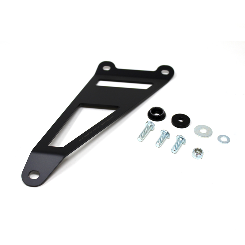 Steel muffler bracket developed with professional racing Team easy to mount instead of OEM part. Lighter than OEM bracket is available in matte black color only and provided with an aluminum conical spacer marked Valter Moto Components. Arrow exhaust system