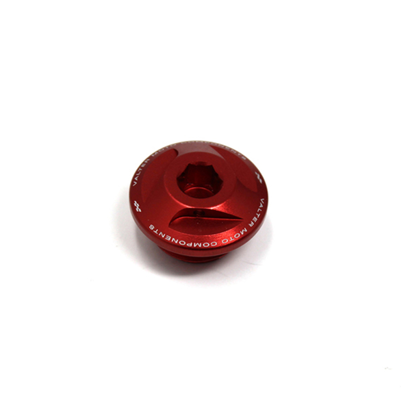Entirely made with CNC machinery in aluminum alloy is a perfect replacement to the OEM cap to enrich bike look. It is provided with a safety wire and a little steel plate to fix it to an engine bolt for track use.
