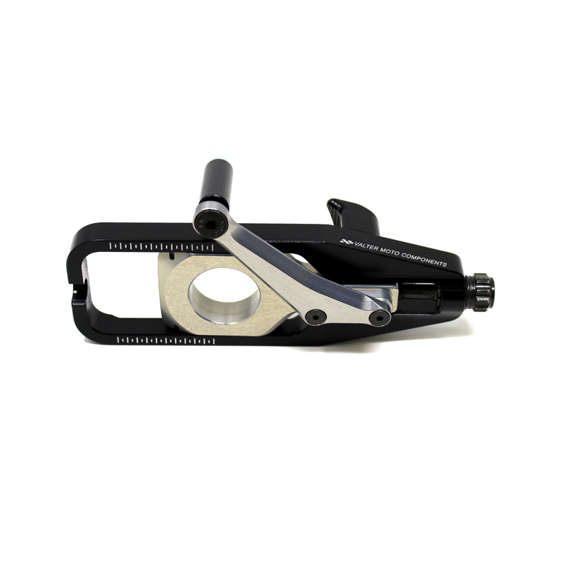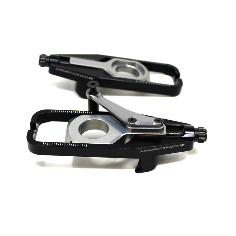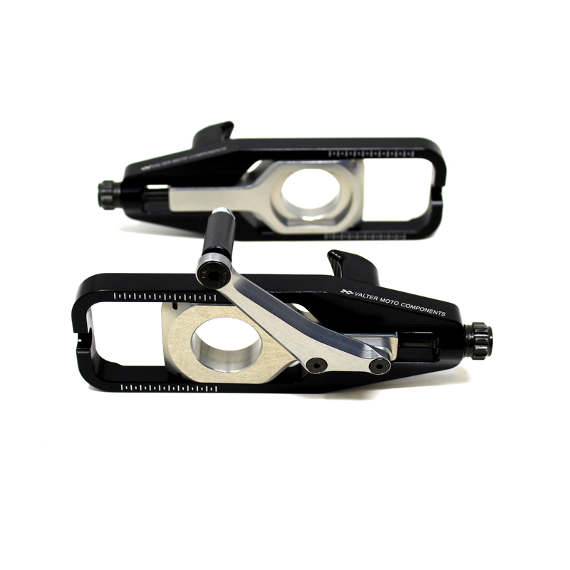 VMC Chain Adjusters are made with Ergal 7075 alu alloy CNC machined for an excellent material strength. They are easy to mount and allows a fine adjustment of the chain tension and a correct alignment of the rear wheel. This product is part of the new VMC "Pro Line" range that includes professional products only. With caliper support