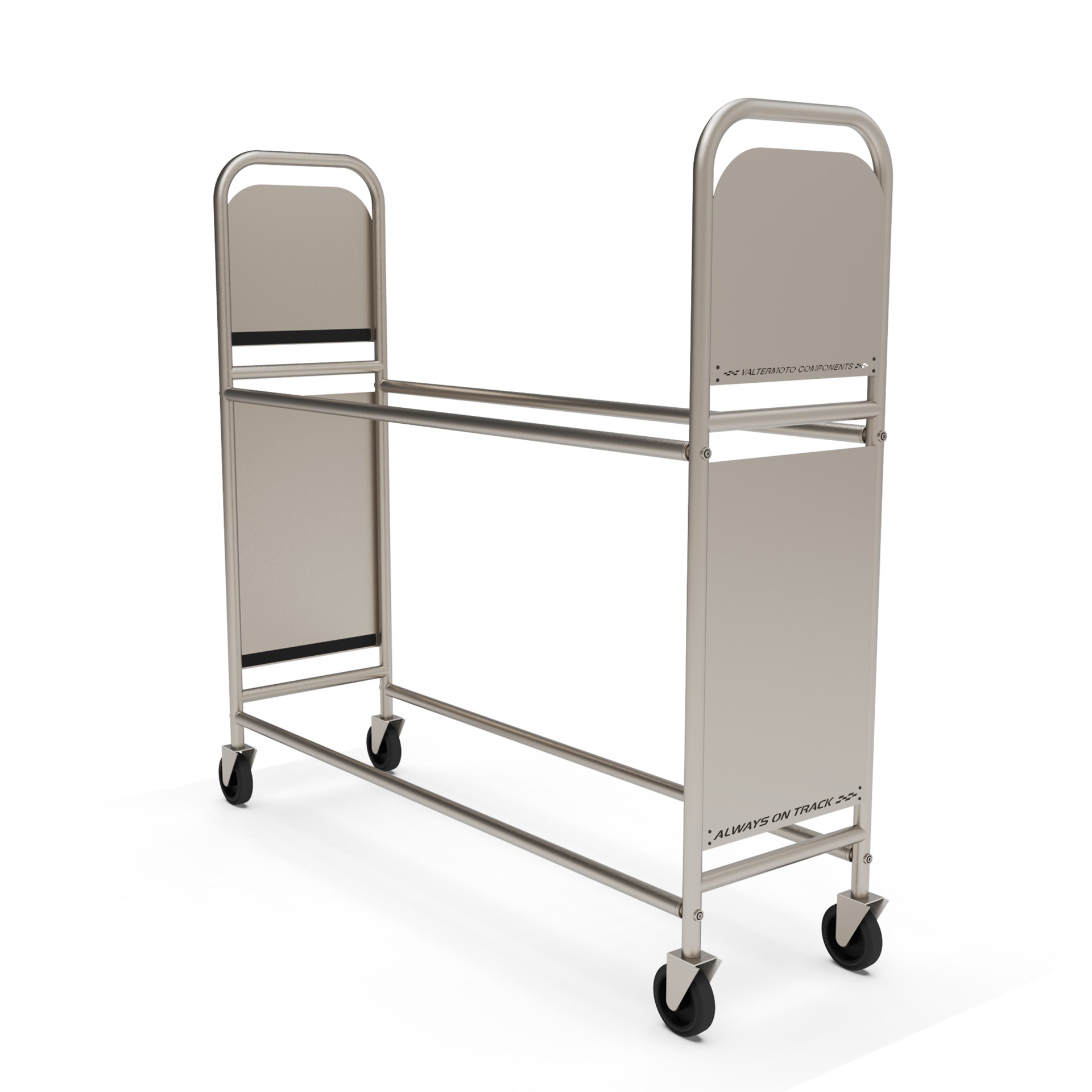 Il carrello porta ruote e cerchi VMC è stato sviluppato in collaborazione con importanti Team che hanno la necessità di trasportare diverse ruote dal box agli specialisti per il service. Il carrello è realizzato con un telaio in tubi di acciaio saldati a mano ed è dotato di 4 ruote gommate pivottanti di grande diametro. Studiato per avere un facile e rapido sistema di smontaggio per il trasporto. 1375 x 556