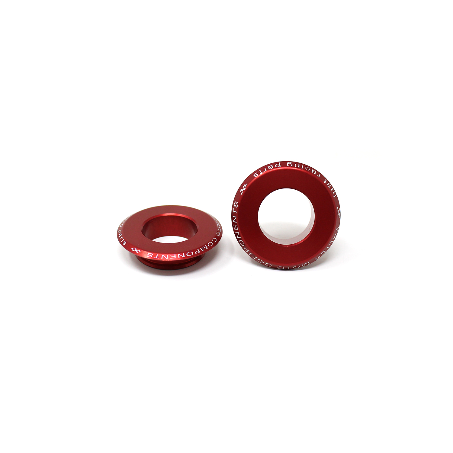 Derivati direttamente dal mondo delle competizioni, questi distanziali ruota sono stati progettati per rimanere sul cerchio durante le operazioni di rimozione delle ruote. Sono realizzati da barre in Ergal 7075 lavorate con torni a controllo numerico per garantire la massima precisione. Colore rosso: nasce dall’esigenza di vedere meglio l’innesto delle ruote in fase di montaggio sulla moto.