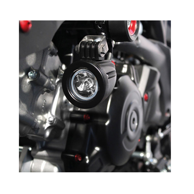 Questo faretto supplementare a LED serve a migliorare sensibilmente l'illuminazione per la visibilità notturna. Corpo realizzato in alluminio con verniciatura nera ad alta resistenza. Lampada a lunga durata 12-48V 15W ghiaccio 6000K. Doppio sistema di raffredadmento interno/esterno. È incluso un bracciale in acciaio per il montaggio su supporti Ø20-30 che consente la regolazione sugli assi X/Y. Le tre chiavi a brugola per il montaggio sono comprese nella confezione.