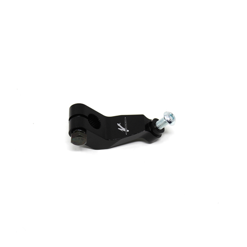 Leva preselettore cambio realizzata in Ergal 7075 lavorato su centri di lavoro CNC per la massima precisione e qualità del prodotto. Questa leva, oltre ad essere un ricambio pedane VMC, permette di variare la posizione di fissaggio dell'asta cambio modificando la sensibilità del movimento e su alcuni modelli di moto consente il passaggio a cambio rovesciato pista.