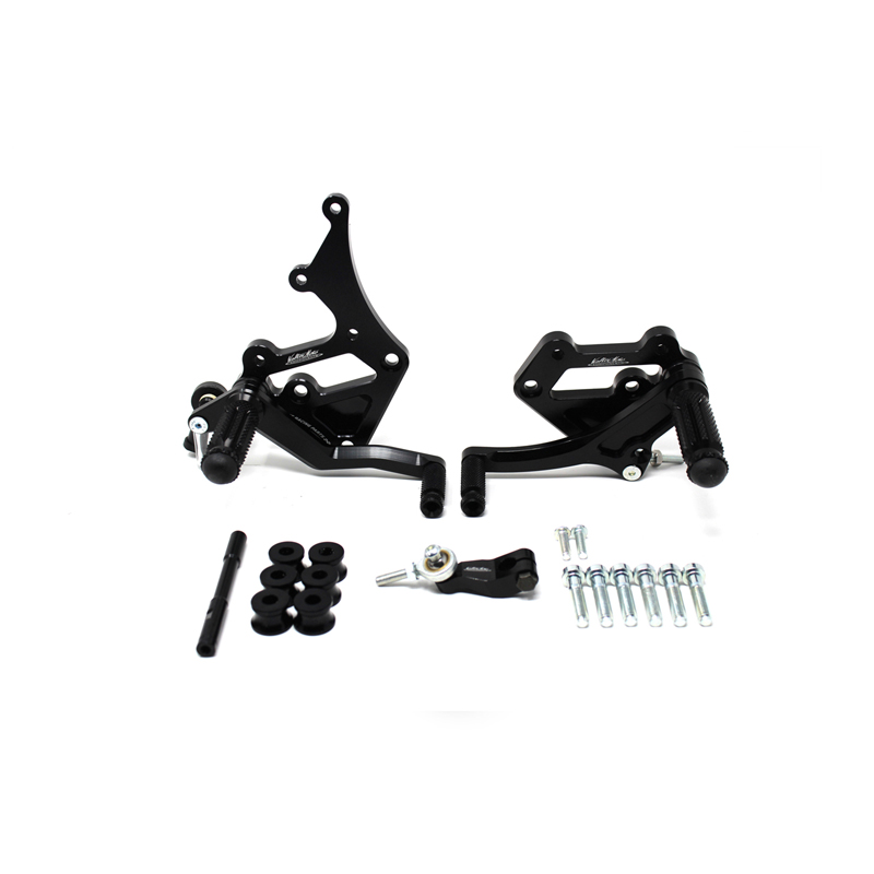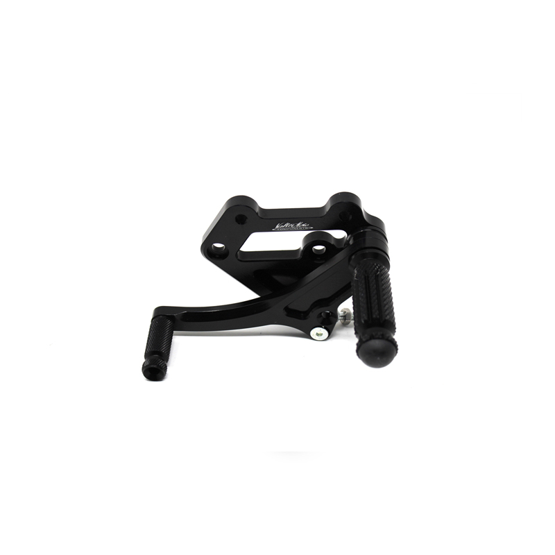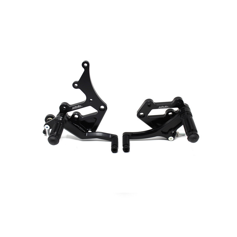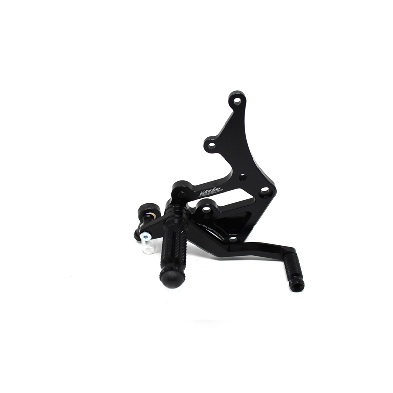 Interamente realizzate in Ergal 7075 T5 lavorato su centri di lavoro CNC questo modello di pedane è stato sviluppato per un uso stradale e pista. I poggiapiedi e i puntalini in alluminio sono lavorati per garantire un grip ottimale. Leve cambio e freno sono montate entrambe su 2 cuscinetti a sfera per ridurre al minimo l'attrito. Il kit comprende tutta la viteria necessaria per il montaggio, l'asta cambio della corretta lunghezza e gli snodi sferici lato cambio e lato freno. Questo modello di pedane prevede l'utilizzo monoposto ed il kit piastre pedane passeggero è venduto separatamente. Per le pedane VMC sono sempre disponibili tutti i ricambi. Passeggero escluso