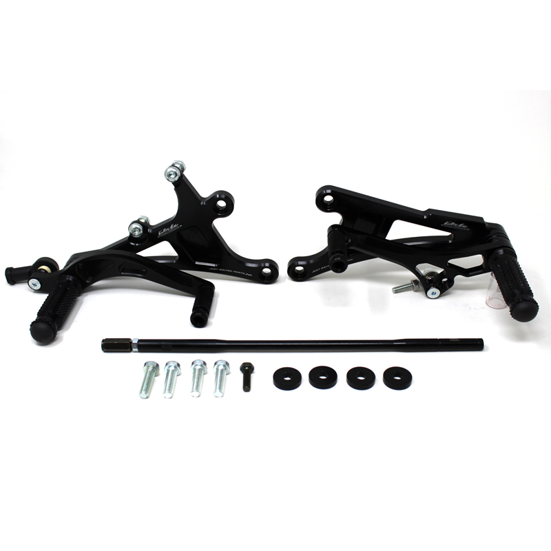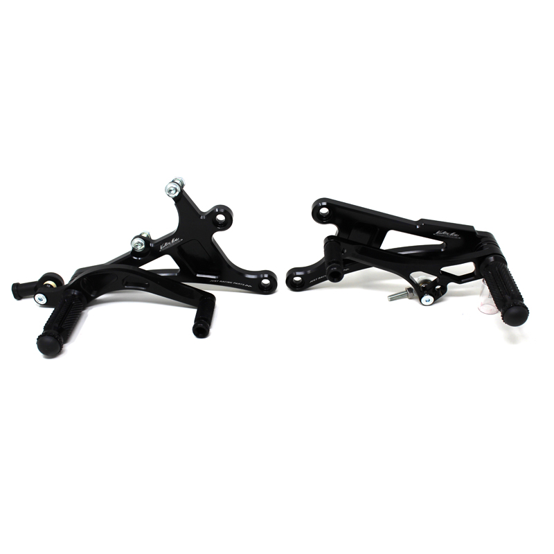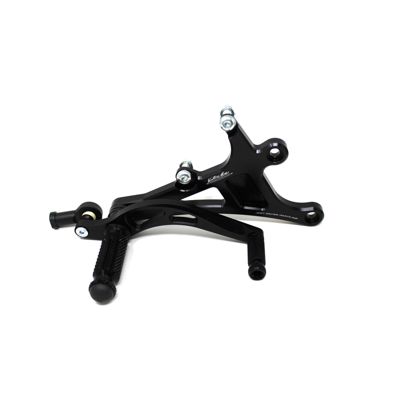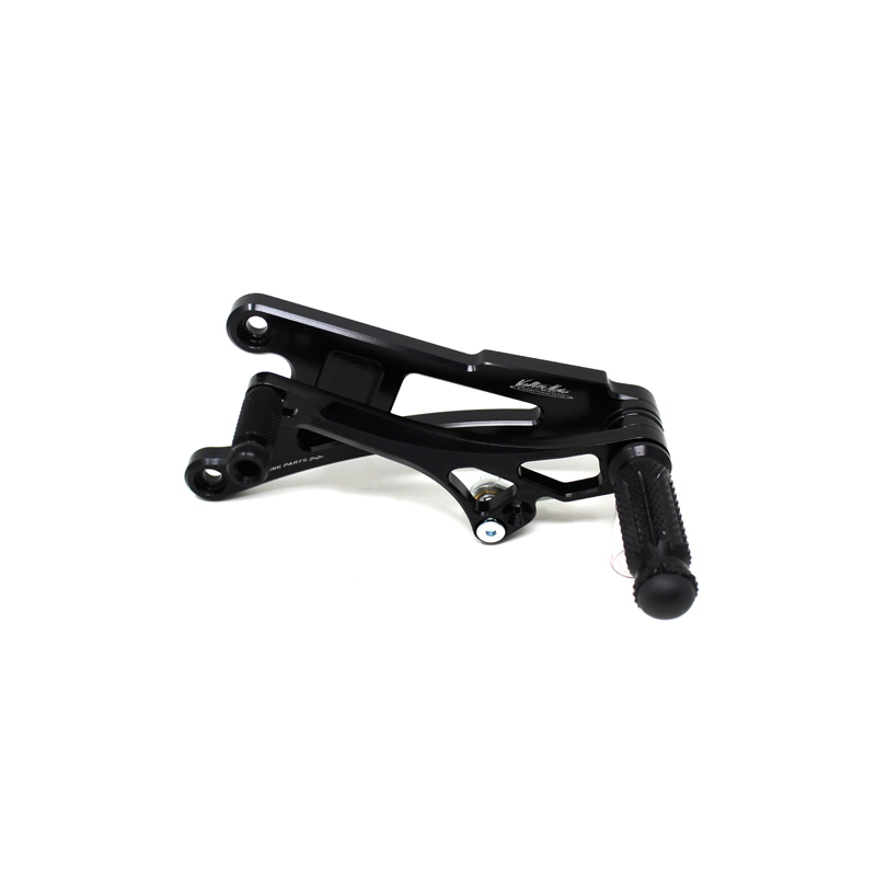 Interamente realizzate in Ergal 7075 T5 lavorato su centri di lavoro CNC questo modello di pedane è stato sviluppato per un uso stradale e pista. I poggiapiedi e i puntalini in alluminio sono lavorati per garantire un grip ottimale. La leva freno è montata su 2 cuscinetti a sfera per ridurre al minimo l'attrito. Il kit comprende tutta la viteria necessaria per il montaggio, l'asta cambio della corretta lunghezza e gli snodi sferici lato cambio e lato freno. Per le pedane VMC sono sempre disponibili tutti i ricambi. Possibilità di montare le alette paratacco. La pedana è con cambio rovesciato.
