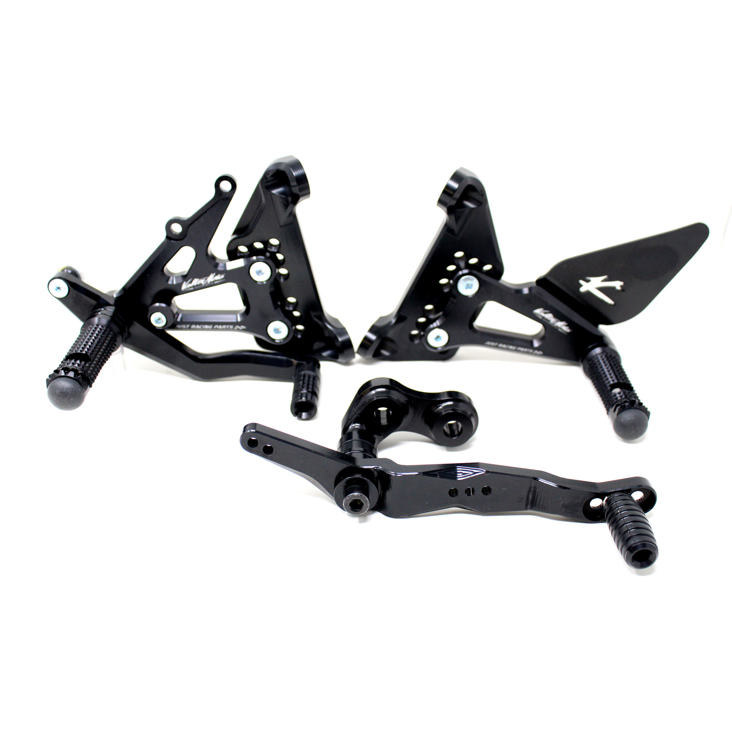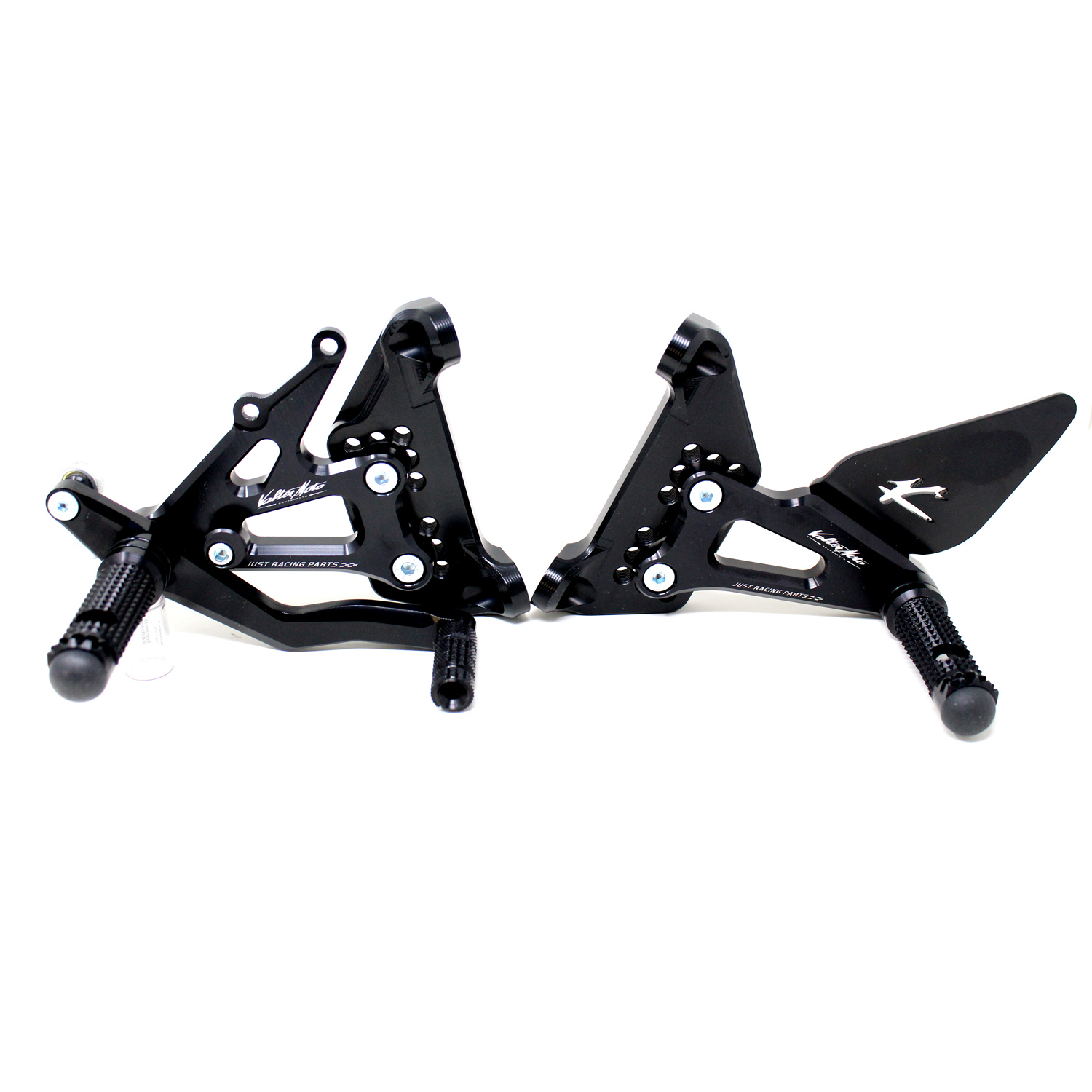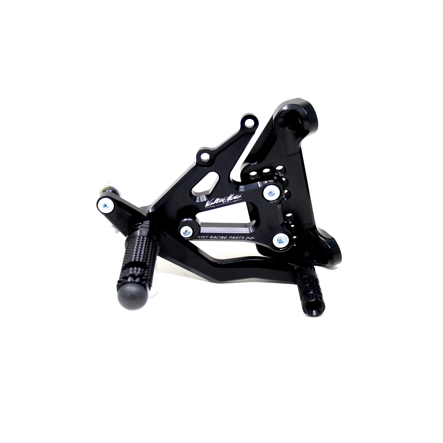 Le pedane regolabili Tipo 1.5 sono interamente realizzate in Ergal 7075 T5 lavorato su centri di lavoro CNC ed il loro utilizzo è consigliato per strada e pista. I poggiapiedi e i puntalini in alluminio sono lavorati per garantire un grip ottimale. Le leve cambio e freno sono entrambe montate su 2 cuscinetti a sfera per ridurre al minimo l'attrito. Le piastre regolabili permettono da 6 a 9 posizioni diverse delle pedane consentendo di trovare il miglior set-up per il proprio stile di guida. Il kit comprende le alette paratacco in alluminio, tutta la viteria necessaria per il montaggio, l'asta cambio della corretta lunghezza, gli snodi sferici lato cambio e lato freno e l'interruttore a pressione per la luce stop. Per le pedane VMC sono sempre disponibili tutti i ricambi.