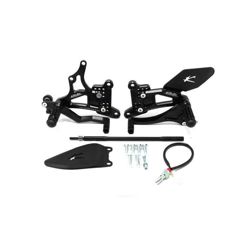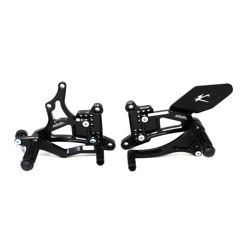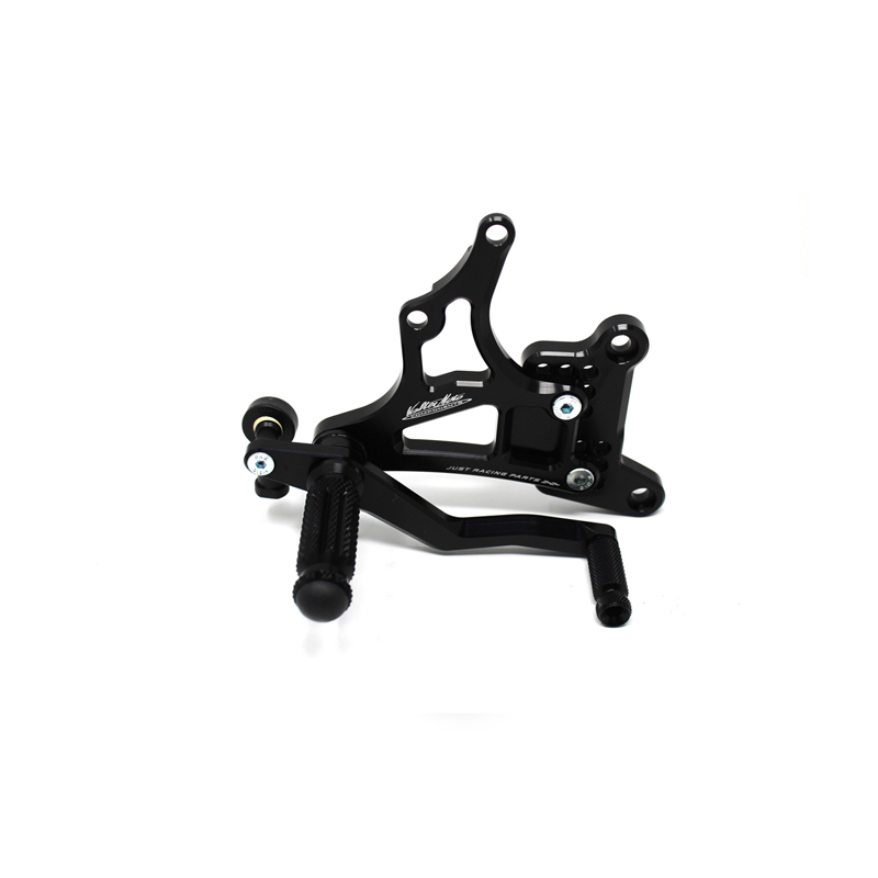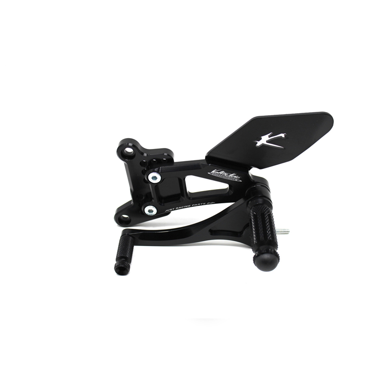 Le pedane regolabili Tipo 1.5 sono interamente realizzate in Ergal 7075 T5 lavorato su centri di lavoro CNC ed il loro utilizzo è consigliato per strada e pista. I poggiapiedi e i puntalini in alluminio sono lavorati per garantire un grip ottimale. Le leve cambio e freno sono entrambe montate su 2 cuscinetti a sfera per ridurre al minimo l'attrito. Le piastre regolabili permettono da 6 a 9 posizioni diverse delle pedane consentendo di trovare il miglior set-up per il proprio stile di guida. Il kit comprende le alette paratacco in alluminio, tutta la viteria necessaria per il montaggio, l'asta cambio della corretta lunghezza, gli snodi sferici lato cambio e lato freno e l'interruttore a pressione per la luce stop. Per le pedane VMC sono sempre disponibili tutti i ricambi.