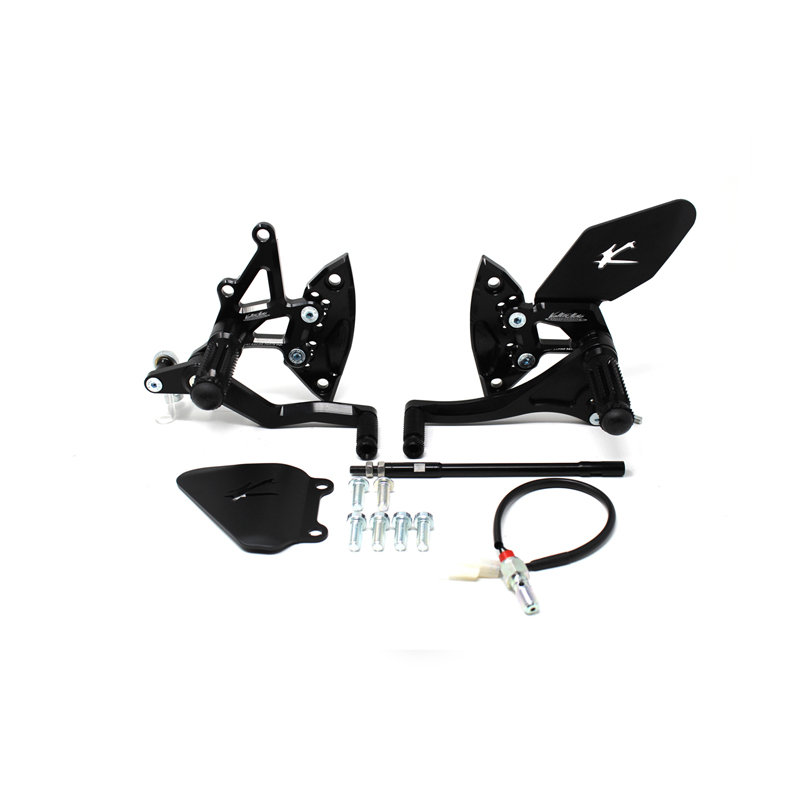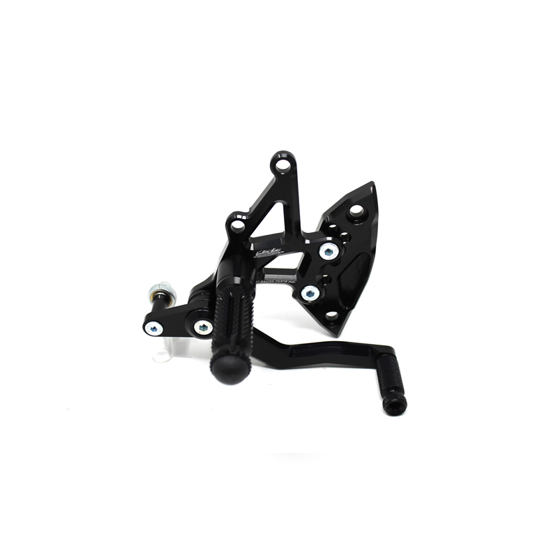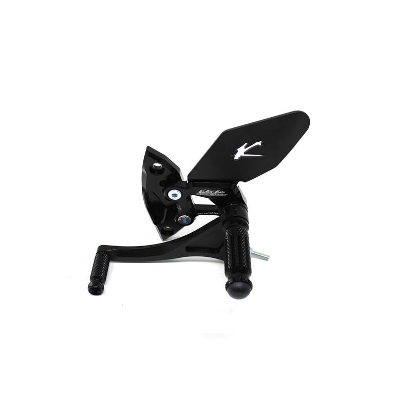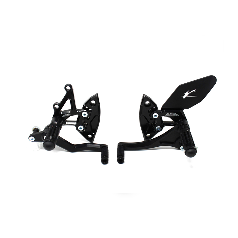 Le pedane regolabili Tipo 1.5 sono interamente realizzate in Ergal 7075 T5 lavorato su centri di lavoro CNC ed il loro utilizzo è consigliato per strada e pista. I poggiapiedi e i puntalini in alluminio sono lavorati per garantire un grip ottimale. Le leve cambio e freno sono entrambe montate su 2 cuscinetti a sfera per ridurre al minimo l'attrito. Le piastre regolabili permettono da 6 a 9 posizioni diverse delle pedane consentendo di trovare il miglior set-up per il proprio stile di guida. Il kit comprende le alette paratacco in alluminio, tutta la viteria necessaria per il montaggio, l'asta cambio della corretta lunghezza, gli snodi sferici lato cambio e lato freno e l'interruttore a pressione per la luce stop. Per le pedane VMC sono sempre disponibili tutti i ricambi.