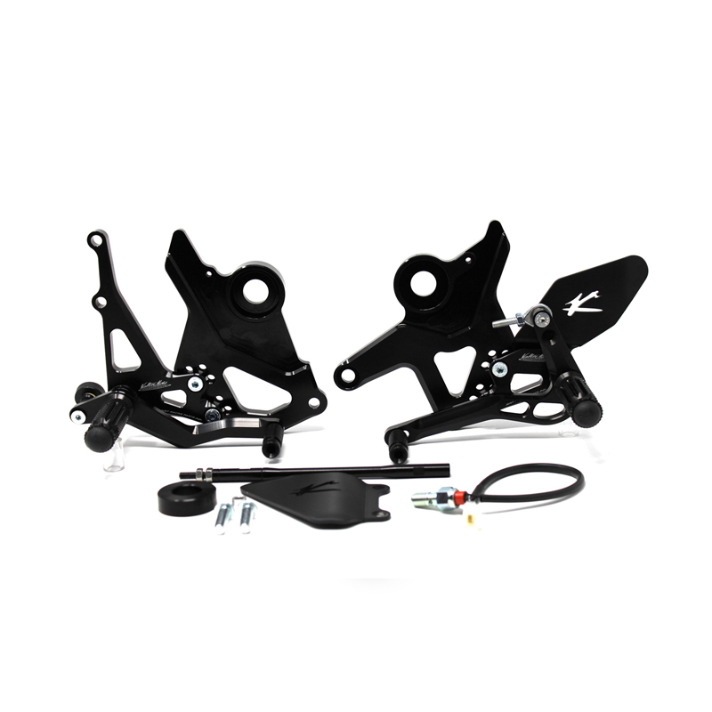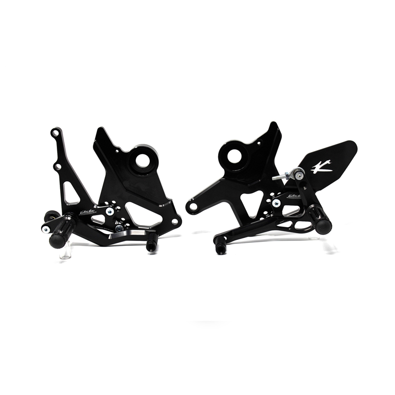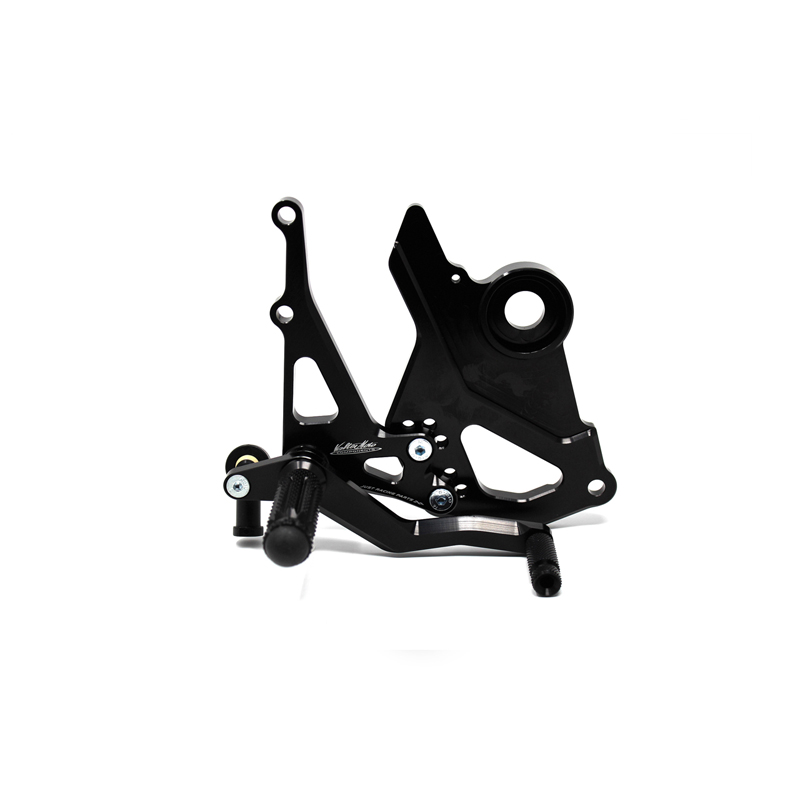 Le pedane regolabili Tipo 1.5 sono interamente realizzate in Ergal 7075 T5 lavorato su centri di lavoro CNC ed il loro utilizzo è consigliato per strada e pista. I poggiapiedi e i puntalini in alluminio sono lavorati per garantire un grip ottimale. Le leve cambio e freno sono entrambe montate su 2 cuscinetti a sfera per ridurre al minimo l'attrito. Le piastre regolabili permettono da 6 a 9 posizioni diverse delle pedane consentendo di trovare il miglior set-up per il proprio stile di guida. Il kit comprende le alette paratacco in alluminio, tutta la viteria necessaria per il montaggio, l'asta cambio della corretta lunghezza, gli snodi sferici lato cambio e lato freno e l'interruttore a pressione per la luce stop. Per le pedane VMC sono sempre disponibili tutti i ricambi.