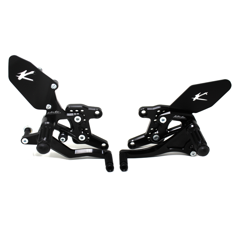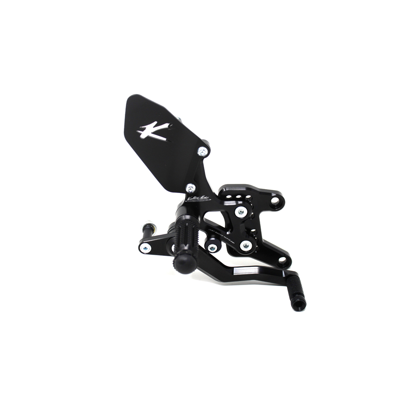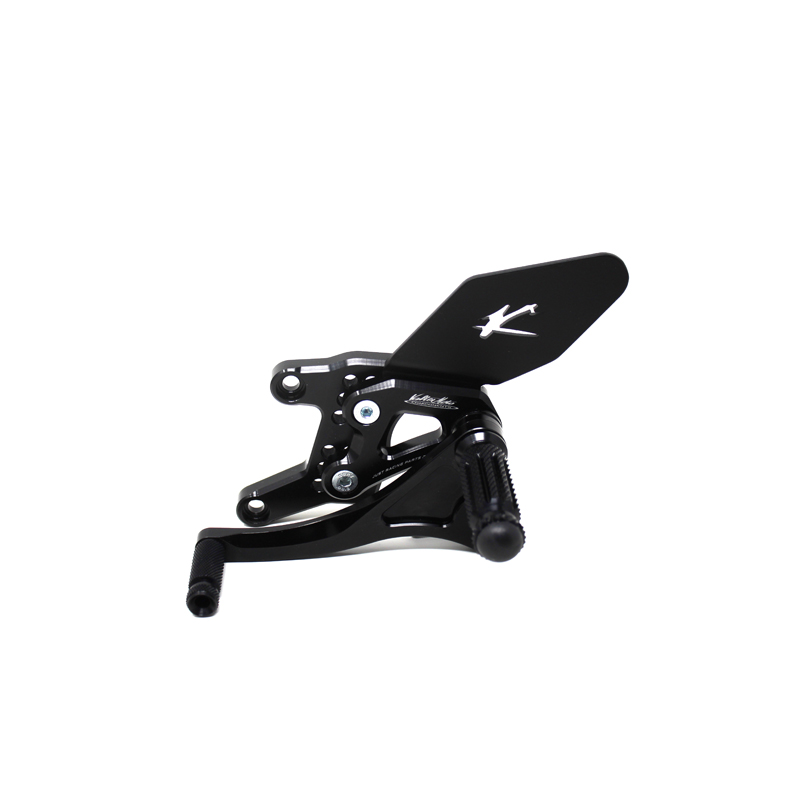 Le pedane regolabili Tipo 1.5 sono interamente realizzate in Ergal 7075 T5 lavorato su centri di lavoro CNC ed il loro utilizzo è consigliato per strada e pista. I poggiapiedi e i puntalini in alluminio sono lavorati per garantire un grip ottimale. Le leve cambio e freno sono entrambe montate su 2 cuscinetti a sfera per ridurre al minimo l'attrito. Le piastre regolabili permettono da 6 a 9 posizioni diverse delle pedane consentendo di trovare il miglior set-up per il proprio stile di guida. Il kit comprende le alette paratacco in alluminio, tutta la viteria necessaria per il montaggio, l'asta cambio della corretta lunghezza, gli snodi sferici lato cambio e lato freno e l'interruttore a pressione per la luce stop. Per le pedane VMC sono sempre disponibili tutti i ricambi.