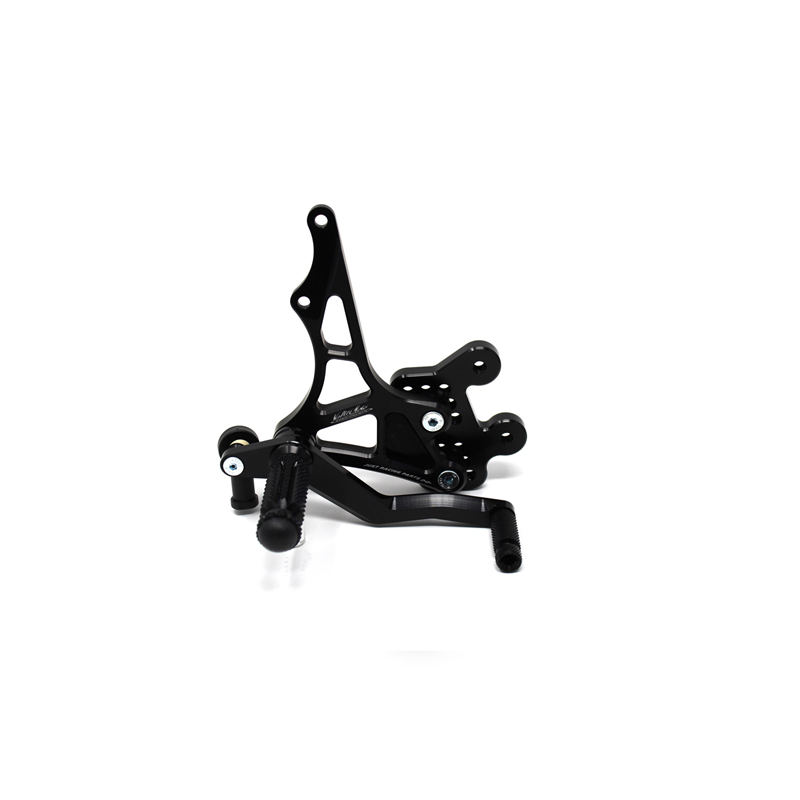 Le pedane regolabili Tipo 1.5 sono interamente realizzate in Ergal 7075 T5 lavorato su centri di lavoro CNC ed il loro utilizzo è consigliato per strada e pista. I poggiapiedi e i puntalini in alluminio sono lavorati per garantire un grip ottimale. Le leve cambio e freno sono entrambe montate su 2 cuscinetti a sfera per ridurre al minimo l'attrito. Le piastre regolabili permettono da 6 a 9 posizioni diverse delle pedane consentendo di trovare il miglior set-up per il proprio stile di guida. Il kit comprende le alette paratacco in alluminio, tutta la viteria necessaria per il montaggio, l'asta cambio della corretta lunghezza, gli snodi sferici lato cambio e lato freno e l'interruttore a pressione per la luce stop. Per le pedane VMC sono sempre disponibili tutti i ricambi. Questo modello è stato testato ed approvato dal TÜV ed omologato dal KBA Germania.
