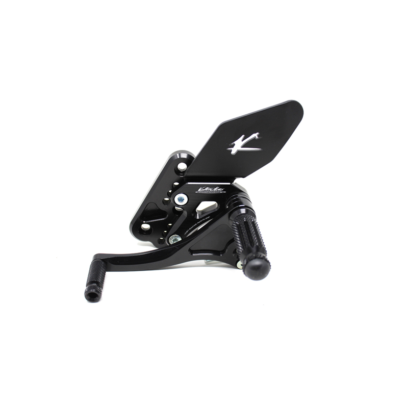 Le pedane regolabili Tipo 1.5 sono interamente realizzate in Ergal 7075 T5 lavorato su centri di lavoro CNC ed il loro utilizzo è consigliato per strada e pista. I poggiapiedi e i puntalini in alluminio sono lavorati per garantire un grip ottimale. Le leve cambio e freno sono entrambe montate su 2 cuscinetti a sfera per ridurre al minimo l'attrito. Le piastre regolabili permettono da 6 a 9 posizioni diverse delle pedane consentendo di trovare il miglior set-up per il proprio stile di guida. Il kit comprende le alette paratacco in alluminio, tutta la viteria necessaria per il montaggio, l'asta cambio della corretta lunghezza, gli snodi sferici lato cambio e lato freno e l'interruttore a pressione per la luce stop. Per le pedane VMC sono sempre disponibili tutti i ricambi. Questo modello è stato testato ed approvato dal TÜV ed omologato dal KBA Germania.