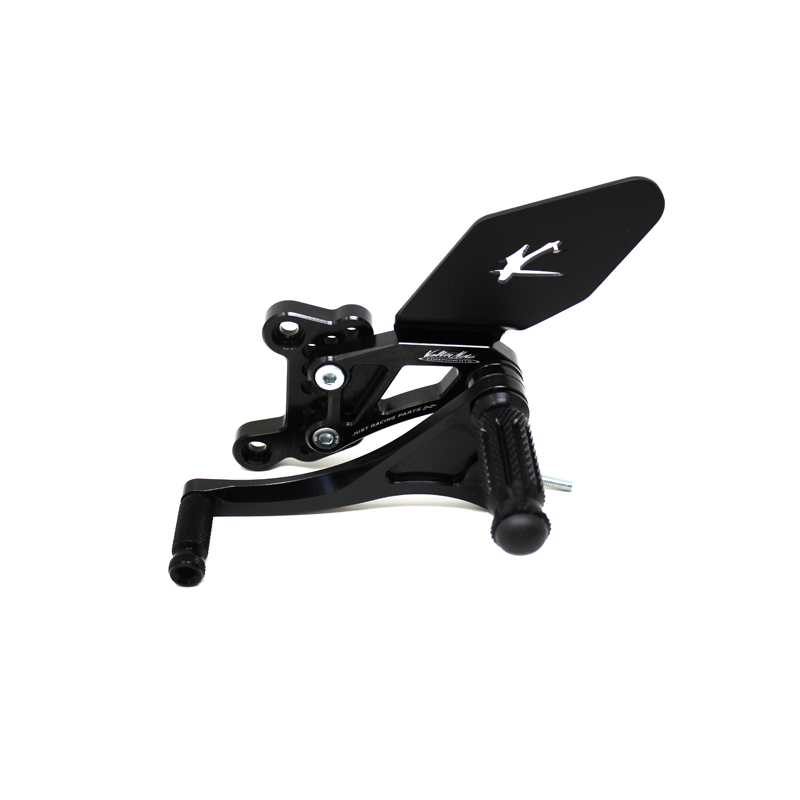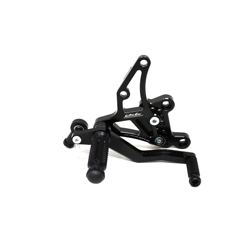Le pedane regolabili Tipo 1.5 sono interamente realizzate in Ergal 7075 T5 lavorato su centri di lavoro CNC ed il loro utilizzo è consigliato per strada e pista. I poggiapiedi e i puntalini in alluminio sono lavorati per garantire un grip ottimale. Le leve cambio e freno sono entrambe montate su 2 cuscinetti a sfera per ridurre al minimo l'attrito. Le piastre regolabili permettono da 6 a 9 posizioni diverse delle pedane consentendo di trovare il miglior set-up per il proprio stile di guida. Il kit comprende le alette paratacco in alluminio, tutta la viteria necessaria per il montaggio, l'asta cambio della corretta lunghezza, gli snodi sferici lato cambio e lato freno e l'interruttore a pressione per la luce stop. Per le pedane VMC sono sempre disponibili tutti i ricambi.