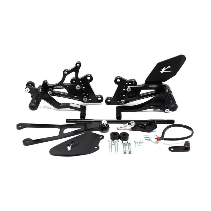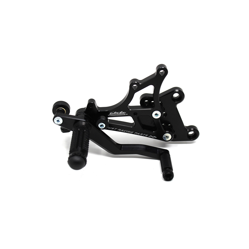 Le pedane regolabili Tipo 1.5 sono interamente realizzate in Ergal 7075 T5 lavorato su centri di lavoro CNC ed il loro utilizzo è consigliato per strada e pista. I poggiapiedi e i puntalini in alluminio sono lavorati per garantire un grip ottimale. Le leve cambio e freno sono entrambe montate su 2 cuscinetti a sfera per ridurre al minimo l'attrito. Le piastre regolabili permettono da 6 a 9 posizioni diverse delle pedane consentendo di trovare il miglior set-up per il proprio stile di guida. Il kit comprende le alette paratacco in alluminio, tutta la viteria necessaria per il montaggio, l'asta cambio della corretta lunghezza, gli snodi sferici lato cambio e lato freno e l'interruttore a pressione per la luce stop. Per le pedane VMC sono sempre disponibili tutti i ricambi.