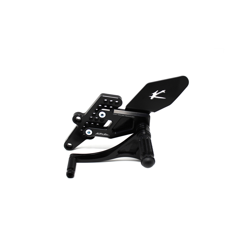 Le pedane regolabili Tipo 1.5 sono interamente realizzate in Ergal 7075 T5 lavorato su centri di lavoro CNC ed il loro utilizzo è consigliato per strada e pista. I poggiapiedi e i puntalini in alluminio sono lavorati per garantire un grip ottimale. Le leve cambio e freno sono entrambe montate su 2 cuscinetti a sfera per ridurre al minimo l'attrito. Le piastre regolabili permettono da 6 a 9 posizioni diverse delle pedane consentendo di trovare il miglior set-up per il proprio stile di guida. Il kit comprende le alette paratacco in alluminio, tutta la viteria necessaria per il montaggio, l'asta cambio della corretta lunghezza, gli snodi sferici lato cambio e lato freno e l'interruttore a pressione per la luce stop. Per le pedane VMC sono sempre disponibili tutti i ricambi.