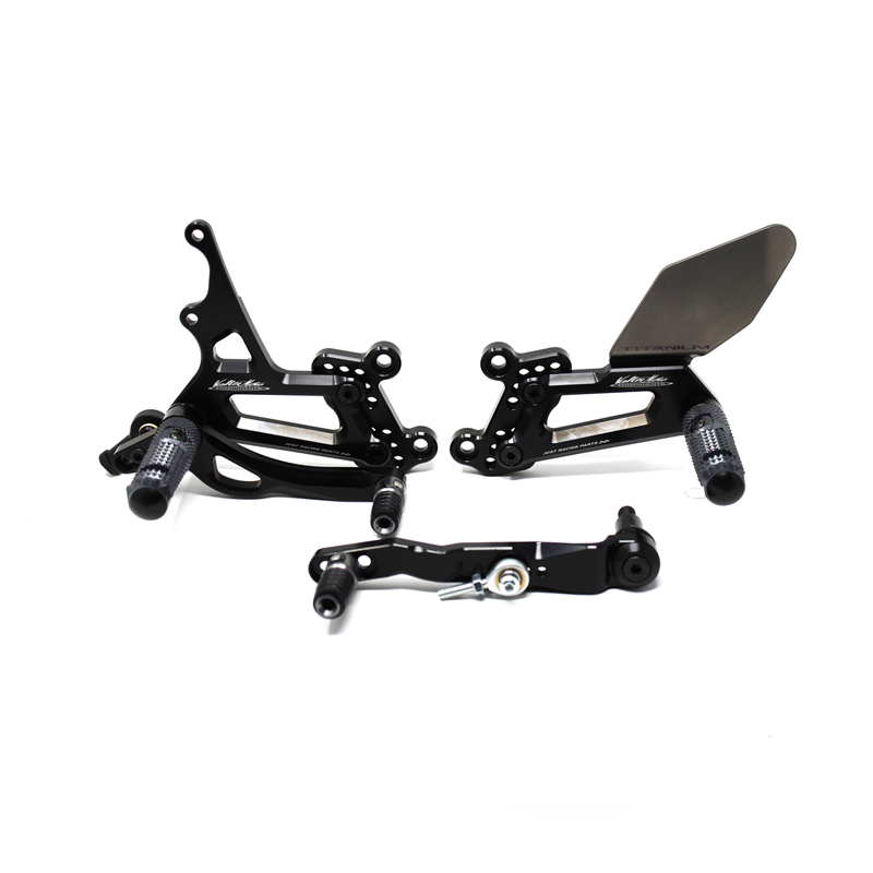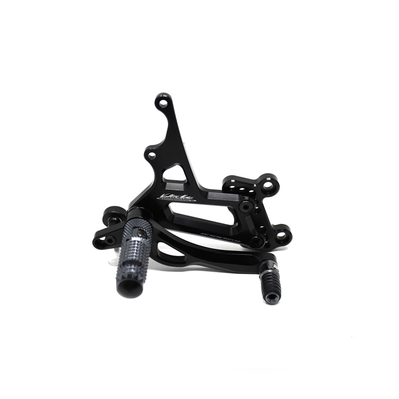 Le pedane regolabili Tipo 3.5 sono il modello di punta della gamma VMC e vengono utilizzate da molti piloti in campionati nazionali e mondiali. Vengono interamente realizzate in Ergal 7075 T5 lavorato su centri di lavoro CNC e sono consigliate prevalentemente per uso pista. I poggiapiedi sono lavorati per offrire il massimo grip, sono reclinabili ma possono essere bloccati tramite un sistema a vite e sono dotati di semisfera protettiva in nylon come previsto dai regolamenti. I nuovi puntalini sono fissi, in alluminio godronato ed ergonomici per facilitare la cambiata e la frenata. Le leve cambio e freno sono lavorate per essere alleggerite e sono entrambe montate su 2 cuscinetti a sfera per ridurre al minimo l'attrito. Sia per la leva cambio che per la leva freno è stato adottato un sistema a slitta che permette la regolazione longitudinale della posizione del puntalino di 10 mm. Le piastre regolabili permettono da 6 a 9 posizioni diverse delle pedane consentendo di trovare il miglior set-up per il proprio stile di guida. Il kit comprende le alette paratacco in titanio, tutta la viteria necessaria per il montaggio, l'asta cambio della corretta lunghezza, gli snodi sferici lato cambio e lato freno e l'interruttore a pressione per la luce stop. Per le pedane VMC sono sempre disponibili tutti i ricambi.
