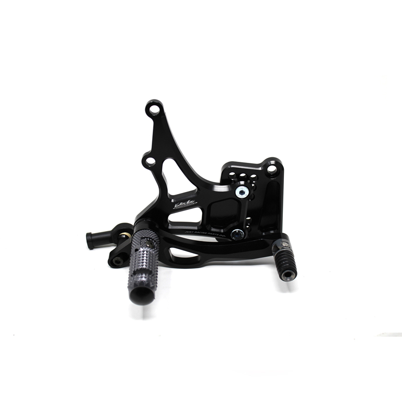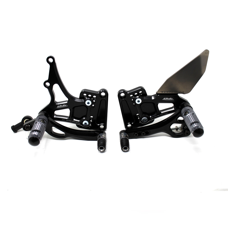 Le pedane regolabili Tipo 3.5 sono il modello di punta della gamma VMC e vengono utilizzate da molti piloti in campionati nazionali e mondiali. Vengono interamente realizzate in Ergal 7075 T5 lavorato su centri di lavoro CNC e sono consigliate prevalentemente per uso pista. I poggiapiedi sono lavorati per offrire il massimo grip, sono reclinabili ma possono essere bloccati tramite un sistema a vite e sono dotati di semisfera protettiva in nylon come previsto dai regolamenti. I nuovi puntalini sono fissi, in alluminio godronato ed ergonomici per facilitare la cambiata e la frenata. Le leve cambio e freno sono lavorate per essere alleggerite e sono entrambe montate su 2 cuscinetti a sfera per ridurre al minimo l'attrito. Sia per la leva cambio che per la leva freno è stato adottato un sistema a slitta che permette la regolazione longitudinale della posizione del puntalino di 10 mm. Le piastre regolabili permettono da 6 a 9 posizioni diverse delle pedane consentendo di trovare il miglior set-up per il proprio stile di guida. Il kit comprende le alette paratacco in titanio, tutta la viteria necessaria per il montaggio, l'asta cambio della corretta lunghezza, gli snodi sferici lato cambio e lato freno e l'interruttore a pressione per la luce stop. Per le pedane VMC sono sempre disponibili tutti i ricambi.