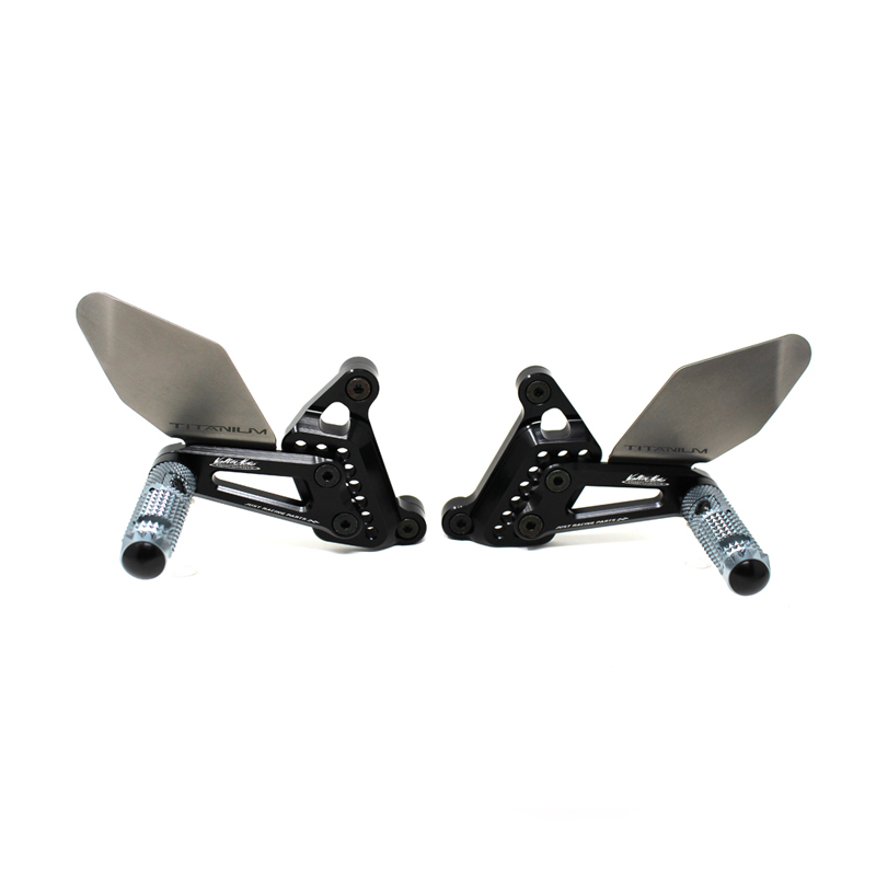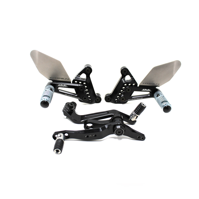 Le pedane regolabili Tipo 3.5 sono il modello di punta della gamma VMC e vengono utilizzate da molti piloti in campionati nazionali e mondiali. Vengono interamente realizzate in Ergal 7075 T5 lavorato su centri di lavoro CNC e sono consigliate prevalentemente per uso pista. I poggiapiedi sono lavorati per offrire il massimo grip, sono reclinabili ma possono essere bloccati tramite un sistema a vite e sono dotati di semisfera protettiva in nylon come previsto dai regolamenti. I nuovi puntalini sono fissi, in alluminio godronato ed ergonomici per facilitare la cambiata e la frenata. Le leve cambio e freno sono lavorate per essere alleggerite e sono entrambe montate su 2 cuscinetti a sfera per ridurre al minimo l'attrito. Sia per la leva cambio che per la leva freno è stato adottato un sistema a slitta che permette la regolazione longitudinale della posizione del puntalino di 10 mm. Le piastre regolabili permettono da 6 a 9 posizioni diverse delle pedane consentendo di trovare il miglior set-up per il proprio stile di guida. Il kit comprende le alette paratacco in titanio, tutta la viteria necessaria per il montaggio, l'asta cambio della corretta lunghezza, gli snodi sferici lato cambio e lato freno e l'interruttore a pressione per la luce stop. Per le pedane VMC sono sempre disponibili tutti i ricambi.