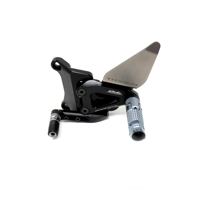 Le pedane regolabili Tipo 3.5 sono il modello di punta della gamma VMC e vengono utilizzate da molti piloti in campionati nazionali e mondiali. Vengono interamente realizzate in Ergal 7075 T5 lavorato su centri di lavoro CNC e sono consigliate prevalentemente per uso pista. I poggiapiedi sono lavorati per offrire il massimo grip, sono reclinabili ma possono essere bloccati tramite un sistema a vite e sono dotati di semisfera protettiva in nylon come previsto dai regolamenti. I nuovi puntalini sono fissi, in alluminio godronato ed ergonomici per facilitare la cambiata e la frenata. Le leve cambio e freno sono lavorate per essere alleggerite e sono entrambe montate su 2 cuscinetti a sfera per ridurre al minimo l'attrito. Sia per la leva cambio che per la leva freno è stato adottato un sistema a slitta che permette la regolazione longitudinale della posizione del puntalino di 10 mm. Le piastre regolabili permettono da 6 a 9 posizioni diverse delle pedane consentendo di trovare il miglior set-up per il proprio stile di guida. Il kit comprende le alette paratacco in titanio, tutta la viteria necessaria per il montaggio, l'asta cambio della corretta lunghezza, gli snodi sferici lato cambio e lato freno e l'interruttore a pressione per la luce stop. Per le pedane VMC sono sempre disponibili tutti i ricambi. Pedane senza leva freno.