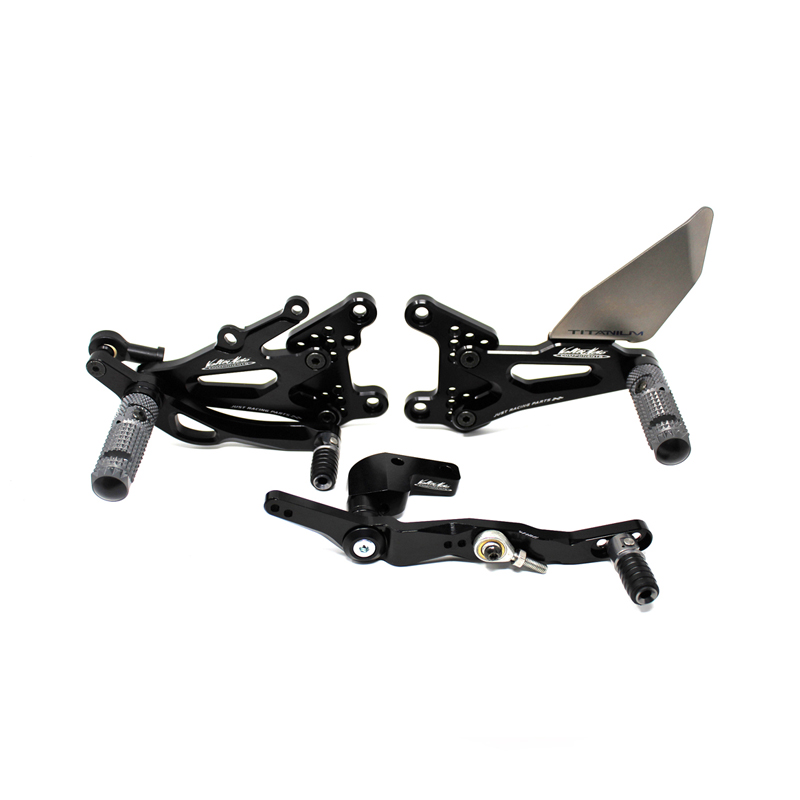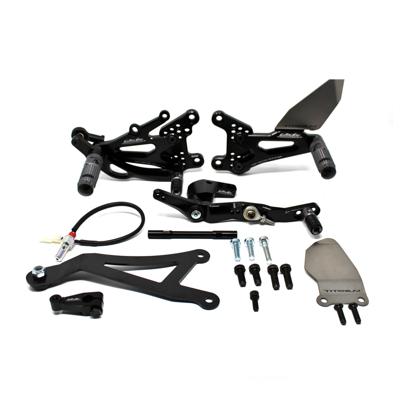 Le pedane regolabili Tipo 3.5 sono il modello di punta della gamma VMC e vengono utilizzate da molti piloti in campionati nazionali e mondiali. Vengono interamente realizzate in Ergal 7075 T5 lavorato su centri di lavoro CNC e sono consigliate prevalentemente per uso pista. I poggiapiedi sono lavorati per offrire il massimo grip, sono reclinabili ma possono essere bloccati tramite un sistema a vite e sono dotati di semisfera protettiva in nylon come previsto dai regolamenti. I nuovi puntalini sono fissi, in alluminio godronato ed ergonomici per facilitare la cambiata e la frenata. Le leve cambio e freno sono lavorate per essere alleggerite e sono entrambe montate su 2 cuscinetti a sfera per ridurre al minimo l'attrito. Sia per la leva cambio che per la leva freno è stato adottato un sistema a slitta che permette la regolazione longitudinale della posizione del puntalino di 10 mm. Le piastre regolabili permettono da 6 a 9 posizioni diverse delle pedane consentendo di trovare il miglior set-up per il proprio stile di guida. Il kit comprende le alette paratacco in titanio, tutta la viteria necessaria per il montaggio, l'asta cambio della corretta lunghezza, gli snodi sferici lato cambio e lato freno e l'interruttore a pressione per la luce stop. Per le pedane VMC sono sempre disponibili tutti i ricambi.