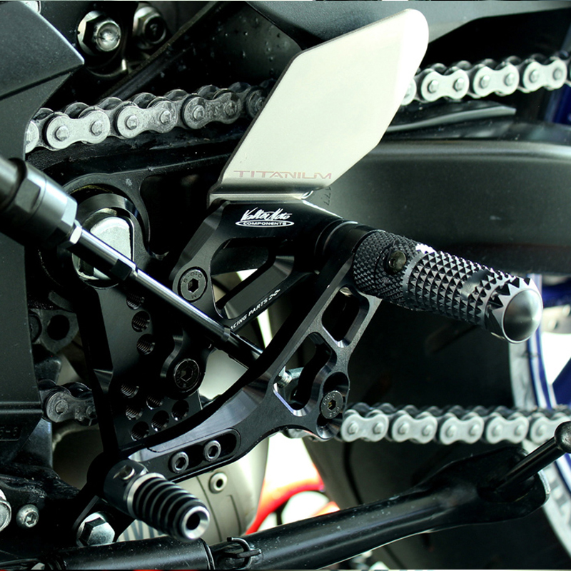 Le pedane regolabili Tipo 3.5 sono il modello di punta della gamma VMC e vengono utilizzate da molti piloti in campionati nazionali e mondiali. Vengono interamente realizzate in Ergal 7075 T5 lavorato su centri di lavoro CNC e sono consigliate prevalentemente per uso pista. I poggiapiedi sono lavorati per offrire il massimo grip, sono reclinabili ma possono essere bloccati tramite un sistema a vite e sono dotati di semisfera protettiva in nylon come previsto dai regolamenti. I nuovi puntalini sono fissi, in alluminio godronato ed ergonomici per facilitare la cambiata e la frenata. Le leve cambio e freno sono lavorate per essere alleggerite e sono entrambe montate su 2 cuscinetti a sfera per ridurre al minimo l'attrito. Sia per la leva cambio che per la leva freno è stato adottato un sistema a slitta che permette la regolazione longitudinale della posizione del puntalino di 10 mm. Le piastre regolabili permettono da 6 a 9 posizioni diverse delle pedane consentendo di trovare il miglior set-up per il proprio stile di guida. Il kit comprende le alette paratacco in titanio, tutta la viteria necessaria per il montaggio, l'asta cambio della corretta lunghezza, gli snodi sferici lato cambio e lato freno e l'interruttore a pressione per la luce stop. Per le pedane VMC sono sempre disponibili tutti i ricambi.