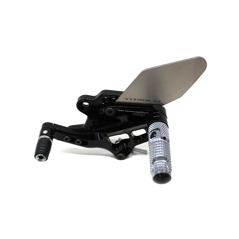 Le pedane regolabili Tipo 3.5 sono il modello di punta della gamma VMC e vengono utilizzate da molti piloti in campionati nazionali e mondiali. Vengono interamente realizzate in Ergal 7075 T5 lavorato su centri di lavoro CNC e sono consigliate prevalentemente per uso pista. I poggiapiedi sono lavorati per offrire il massimo grip, sono reclinabili ma possono essere bloccati tramite un sistema a vite e sono dotati di semisfera protettiva in nylon come previsto dai regolamenti. I nuovi puntalini sono fissi, in alluminio godronato ed ergonomici per facilitare la cambiata e la frenata. Le leve cambio e freno sono lavorate per essere alleggerite e sono entrambe montate su 2 cuscinetti a sfera per ridurre al minimo l'attrito. Sia per la leva cambio che per la leva freno è stato adottato un sistema a slitta che permette la regolazione longitudinale della posizione del puntalino di 10 mm. Le piastre regolabili permettono da 6 a 9 posizioni diverse delle pedane consentendo di trovare il miglior set-up per il proprio stile di guida. Il kit comprende le alette paratacco in titanio, tutta la viteria necessaria per il montaggio, l'asta cambio della corretta lunghezza, gli snodi sferici lato cambio e lato freno e l'interruttore a pressione per la luce stop. Per le pedane VMC sono sempre disponibili tutti i ricambi. E' possibile montare la pedana con il cavalletto.