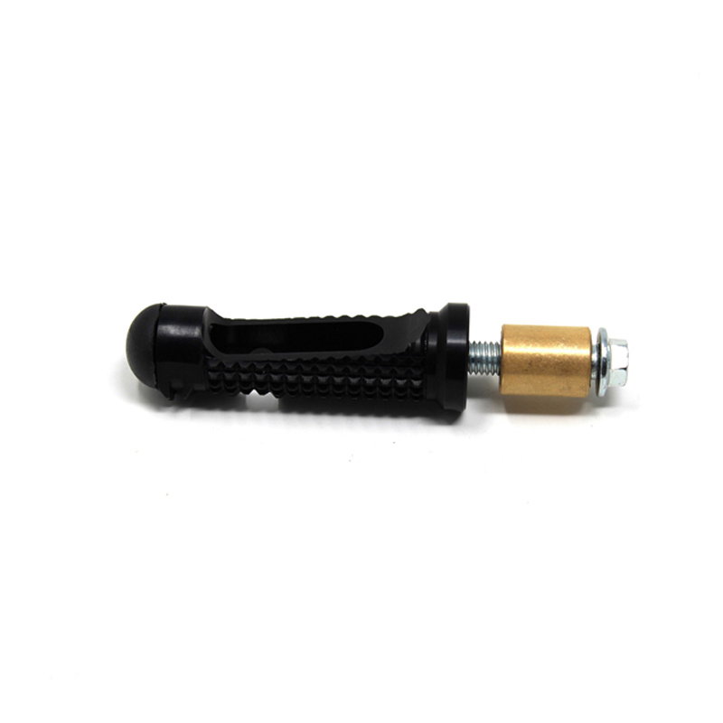 Poggiapiede singolo di ricambio per pedane VMC Tipo 3.5. Questo tipo di poggiapiede può essere utilizzato esclusivamente con leve cambio/freno VMC montate su bronzina. I poggiapedi possono essere montati anche su pedane VMC Tipo 1 e Tipo 1.5.