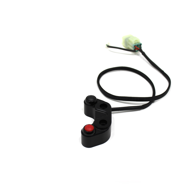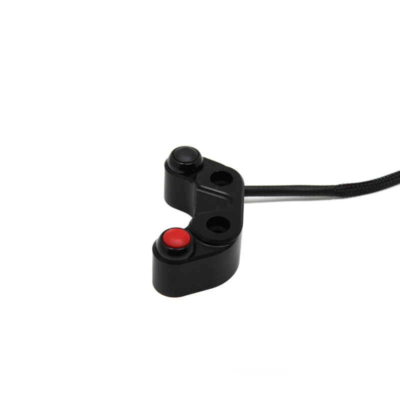 Pulsantiera di comando a 2 tasti ricavata dal pieno in alluminio lavorato CNC. Questo modello di pulsantiera lato freno è dotata di 2 tasti preimpostati deve essere montata al posto del collare pompa freno. Il cablaggio plug & play permette di controllare le funzioni RUN/STOP e START.