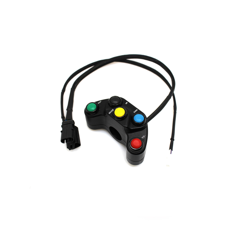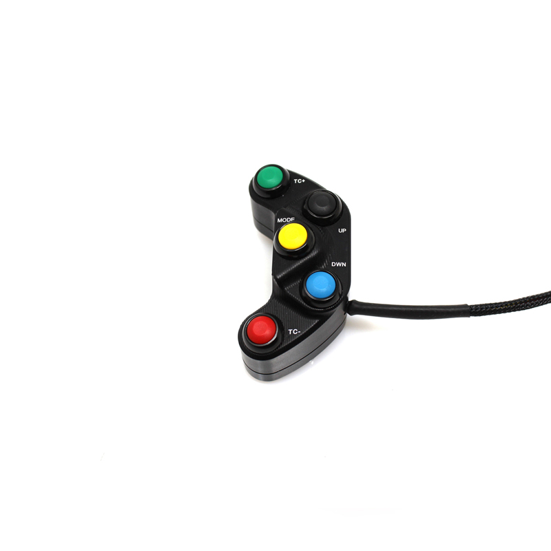 Coppia di pulsantiere di comando ricavate dal pieno in alluminio lavorato CNC. Questi modelli di pulsantiera lato frizione e freno sono dotate di tasti preimpostati per diversi controlli. Il cablaggio plug & play permette di controllare le funzioni TC+, TC-, PAG+, PAG-, MODE, RUN/STOP, START.