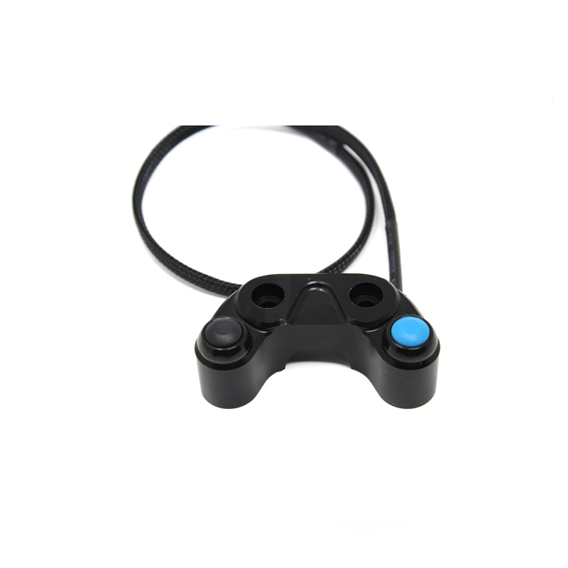 Pulsantiera di comando universale sinistra a 2 tasti ricavata dal pieno in alluminio lavorato CNC. Questo modello di pulsantiera deve essere montata sul lato frizione ed è dotata di 2 tasti. Il cablaggio non è plug & play e deve essere effettuato da uno specialista.