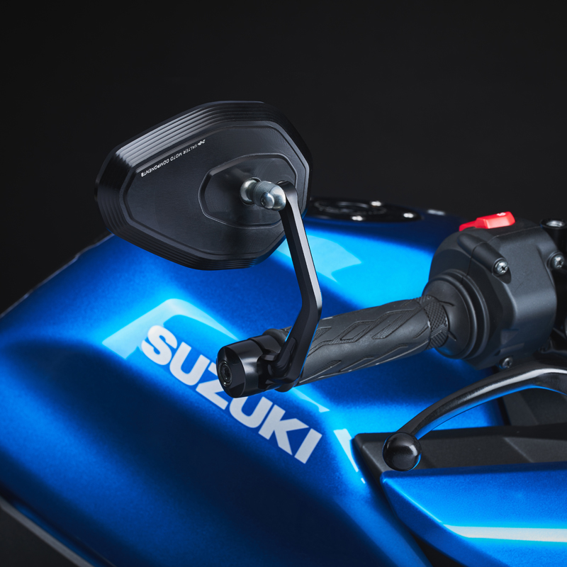 Lo specchietto STREET è stato sviluppato con sistema di fissaggio accanto alle manopole al posto del terminale manubrio. Braccio di fissaggio e corpo realizzati in alluminio lavorato CNC. Vetro specchio azzurrato e convesso come da normativa. Le misure sono le seguenti: 120mmx85mm e 15mm di profondità. Lo specchio permette il montaggio indifferentemente sulla sinistra o sulla destra del manubrio. Gli attacchi specifici sono venduti separatamente (utilizzare attacchi delle protezioni leve).