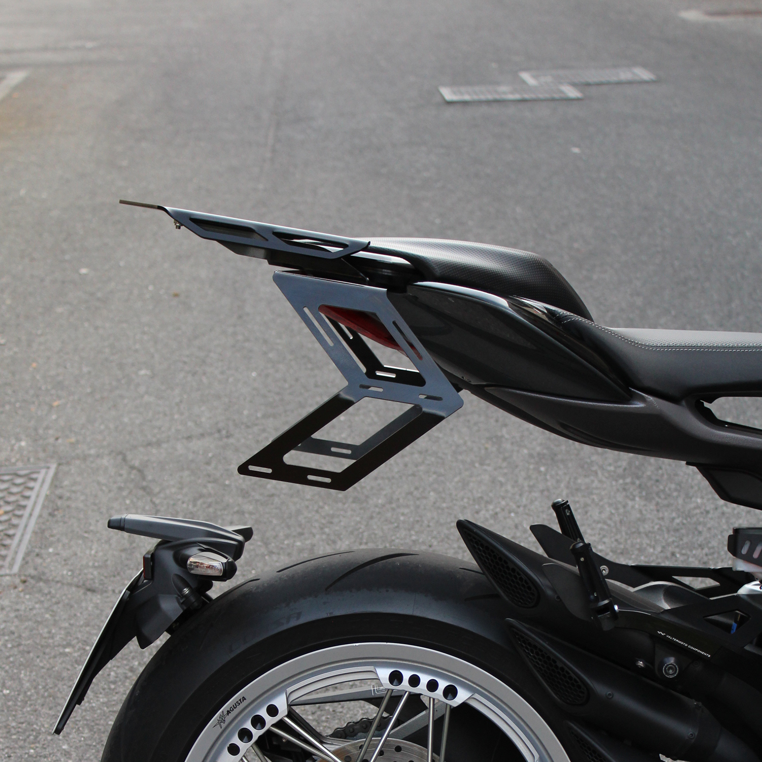 I supporti borse centrali VMC sono realizzati in acciaio resistente di alto spessore. Questi supporti borse sono stati sviluppati per evitare che le borse morbide possano entrare in contatto con la ruota posteriore danneggiandosi e creando una situazione di pericolo. Il prodotto è sviluppato per ogni singolo modello di moto permettendo un montaggio facile che non richiede alcuna modifica. Si montano acquistando le maniglie passeggero. (HND11) portata massima consigliata: 4kg per lato.
