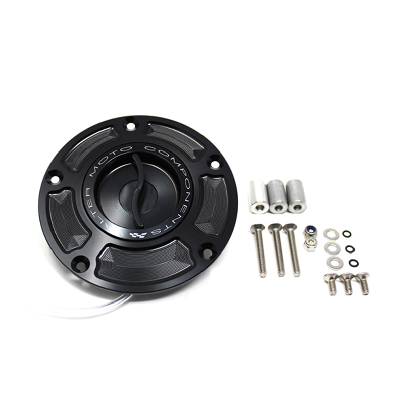 Il tappo serbatoio benzina VMC è ricavato dal pieno in Ergal lavorato su centri di lavoro CNC. Il sistema di chiusura è di tipologia sgancio rapido a due flange per facilitare l'uso con i guanti. Tutti i modelli sono stati sviluppati per sostituire senza alcuna modifica il tappo serbatoio originale.